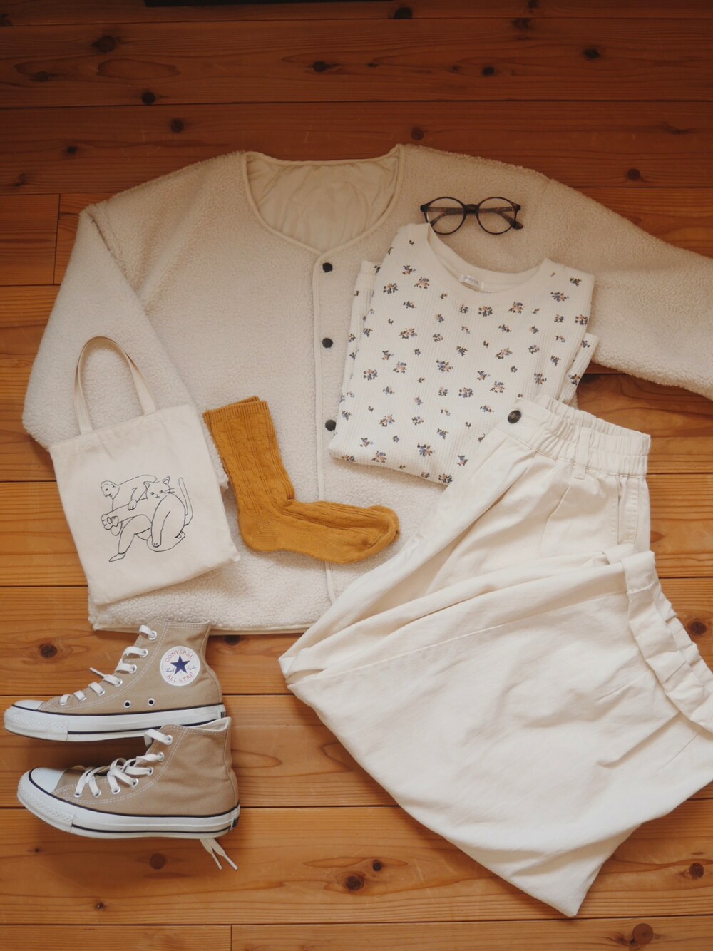 白い服を着ることが多いです。 ボトムスはsoulberry のサーカスパンツで ダボっとゆるっと。