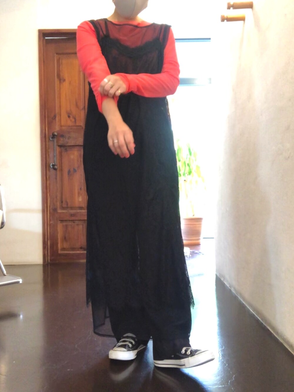 チュールトップス、チュールワンピース、チュールレースキャミワンピースの3枚重ね👗👗👗