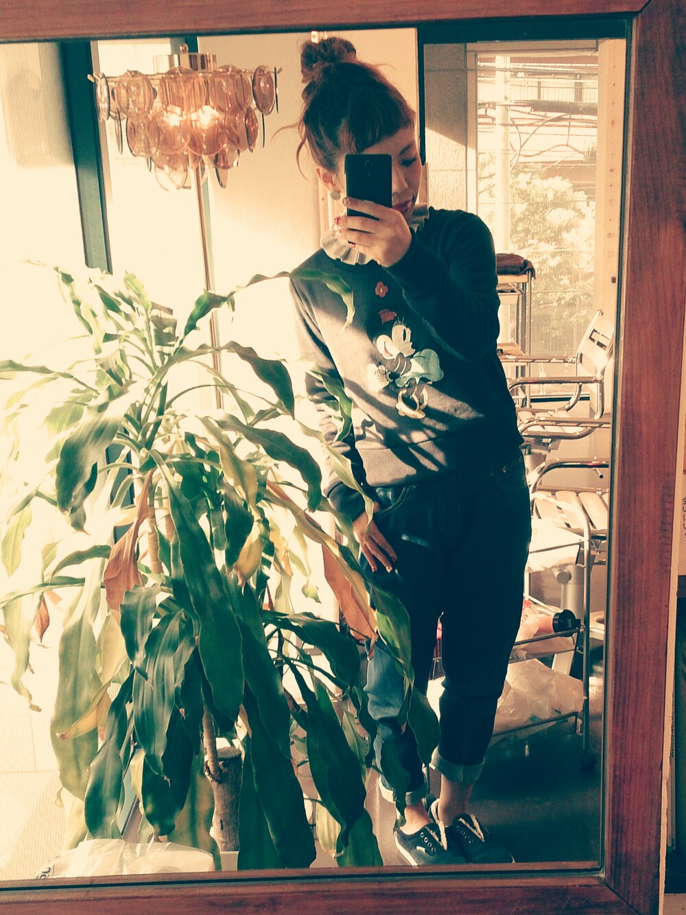 今日も寒いので、ハイネックとスウェットを重ねました! このハイネックのフリルはホントにかわいいです(^w^) ハイネックを着るとついお団子ヘアーになりますので、hairは昨日と同じー♪