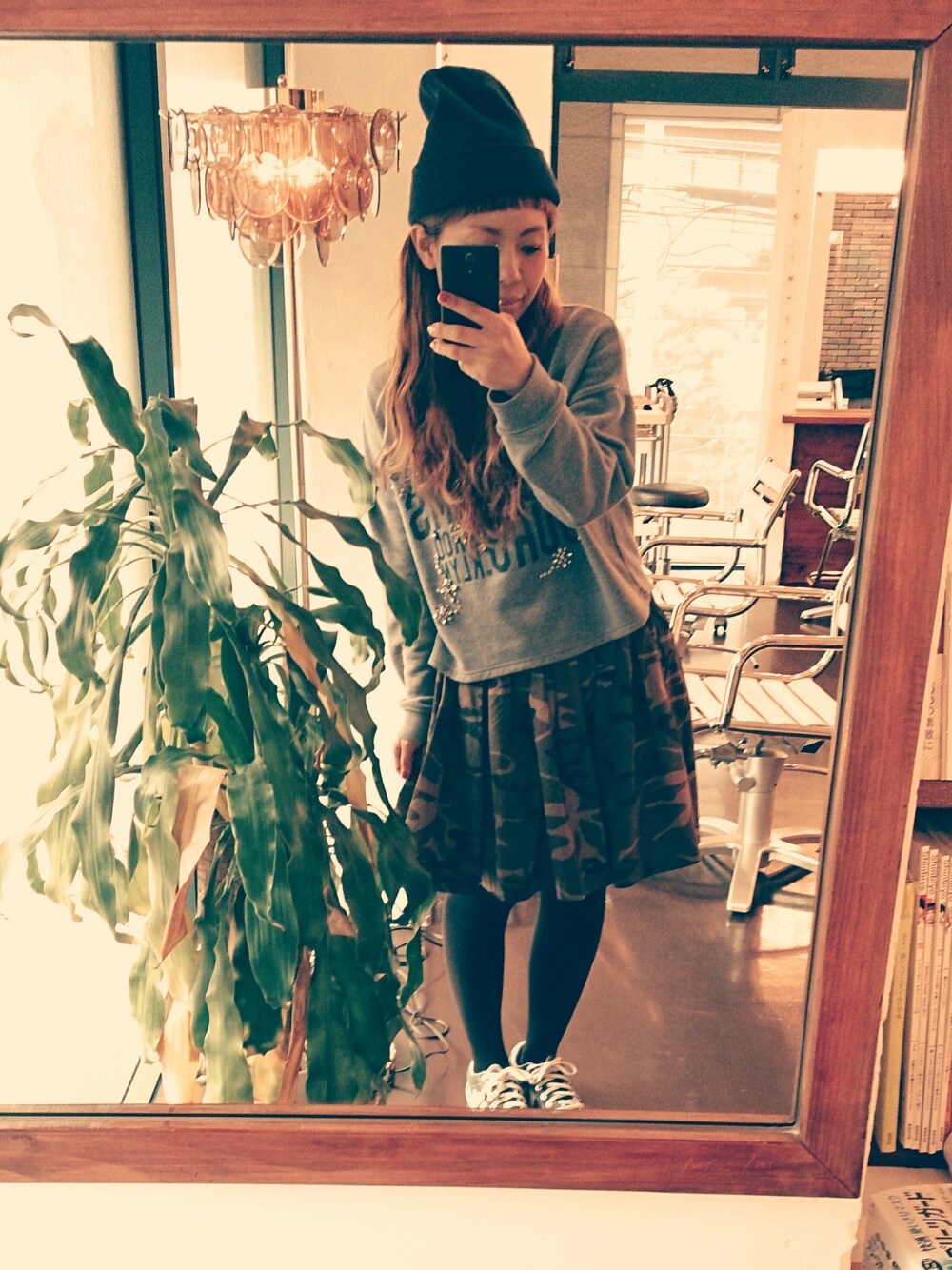 今日は意外と暖かいです♪ でも、相変わらずマフラー、手袋、耳当てのフル装備!! スウェットの下はヒートテックです\(^^)/
