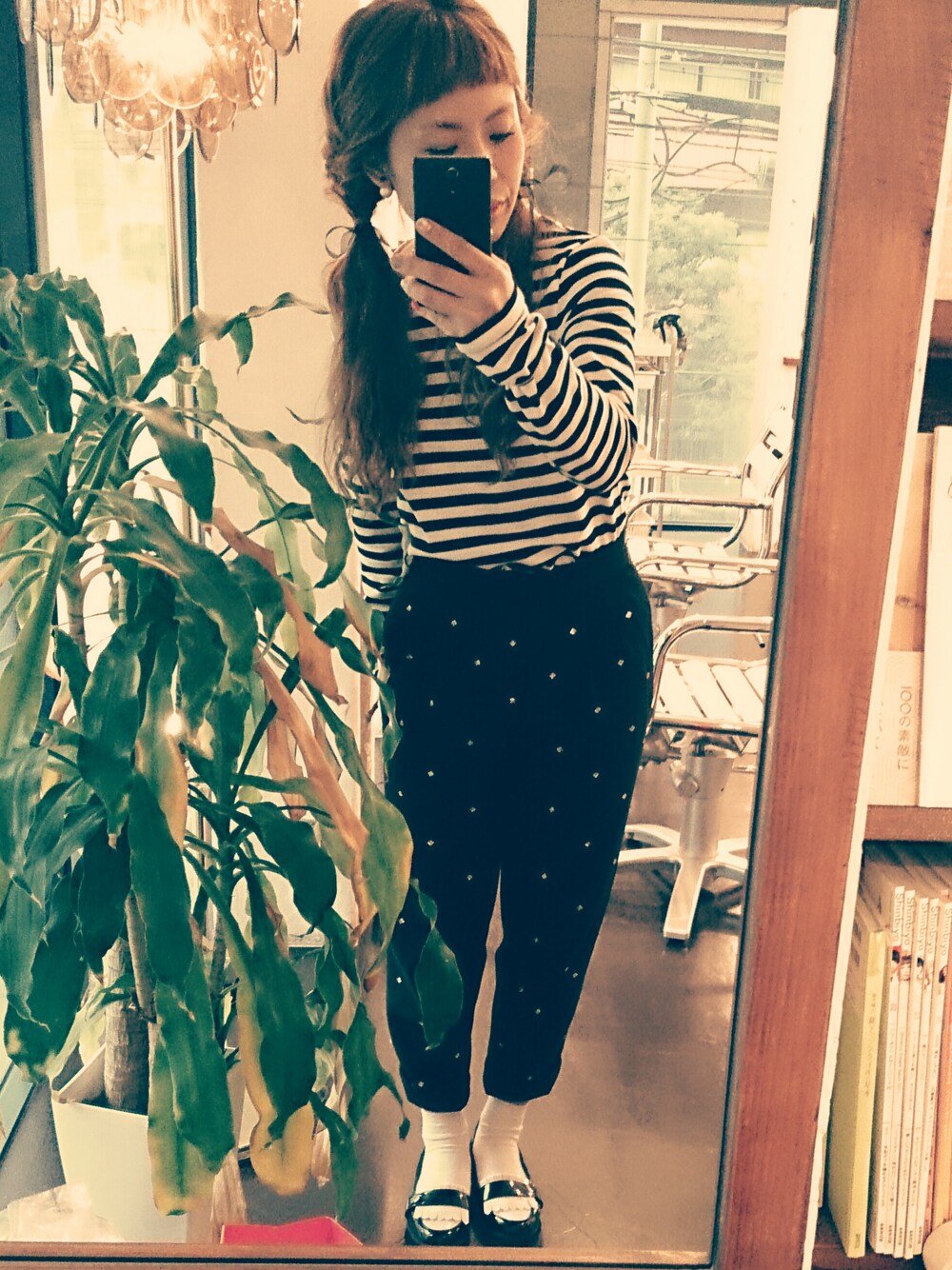 2段くるりんぱのツインテールに押し入れにあった手芸用のリボンを付けてみました! このリボンなかなか使える(笑) ビジューパンツはいつもビジューをどっかに落っことしてこないか不安な気持ちで履いてます(笑)