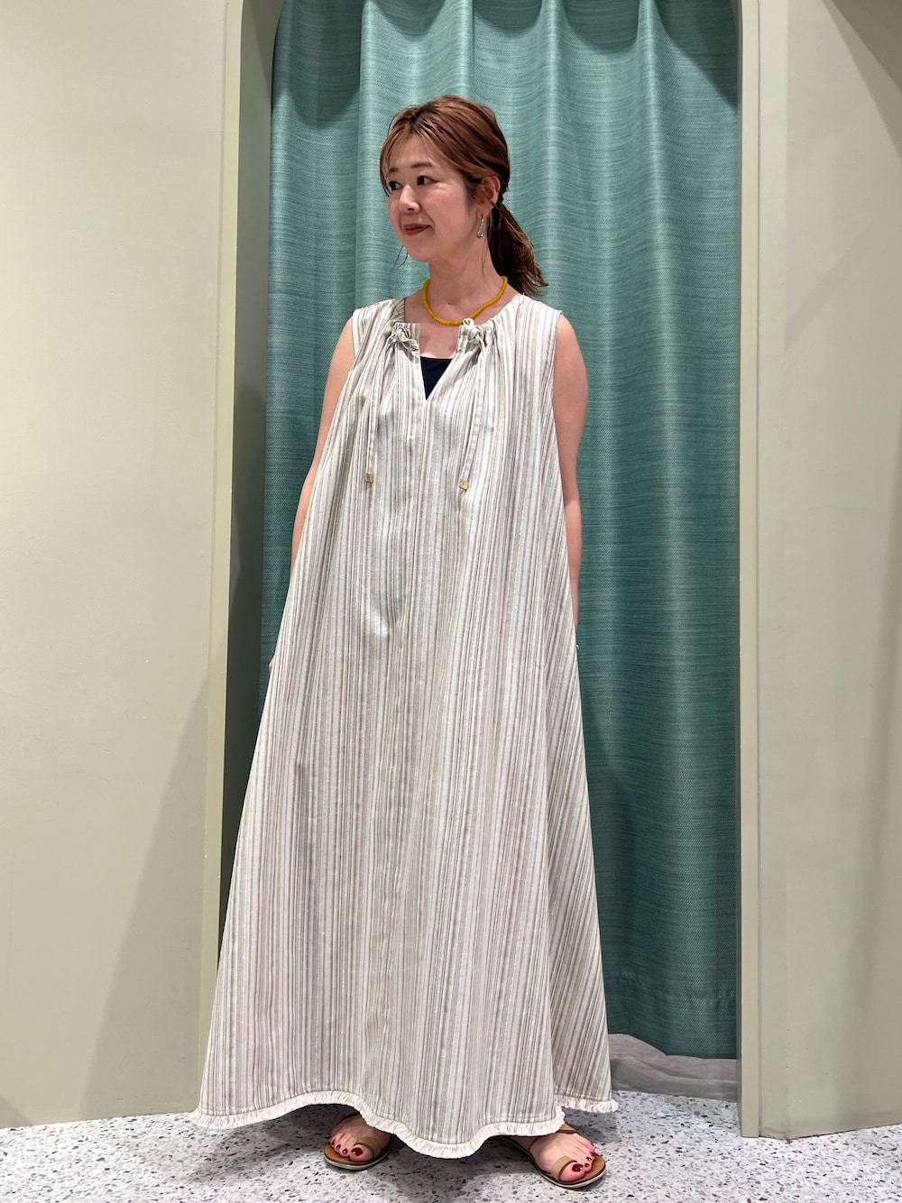 kmk_ggo(Jena espace merveilleux)のワンピース「【全骨格褒められ/体型カバー】2WAYリネンリボンワンピース」を使ったコーディネート