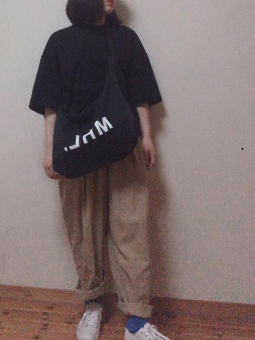 最近すごくシンプルがすき お気に入りのMHLのバック たくさん入るからよきだよ◎ これからもたくさん投稿していくつもりなのでよろしくお願いします~、