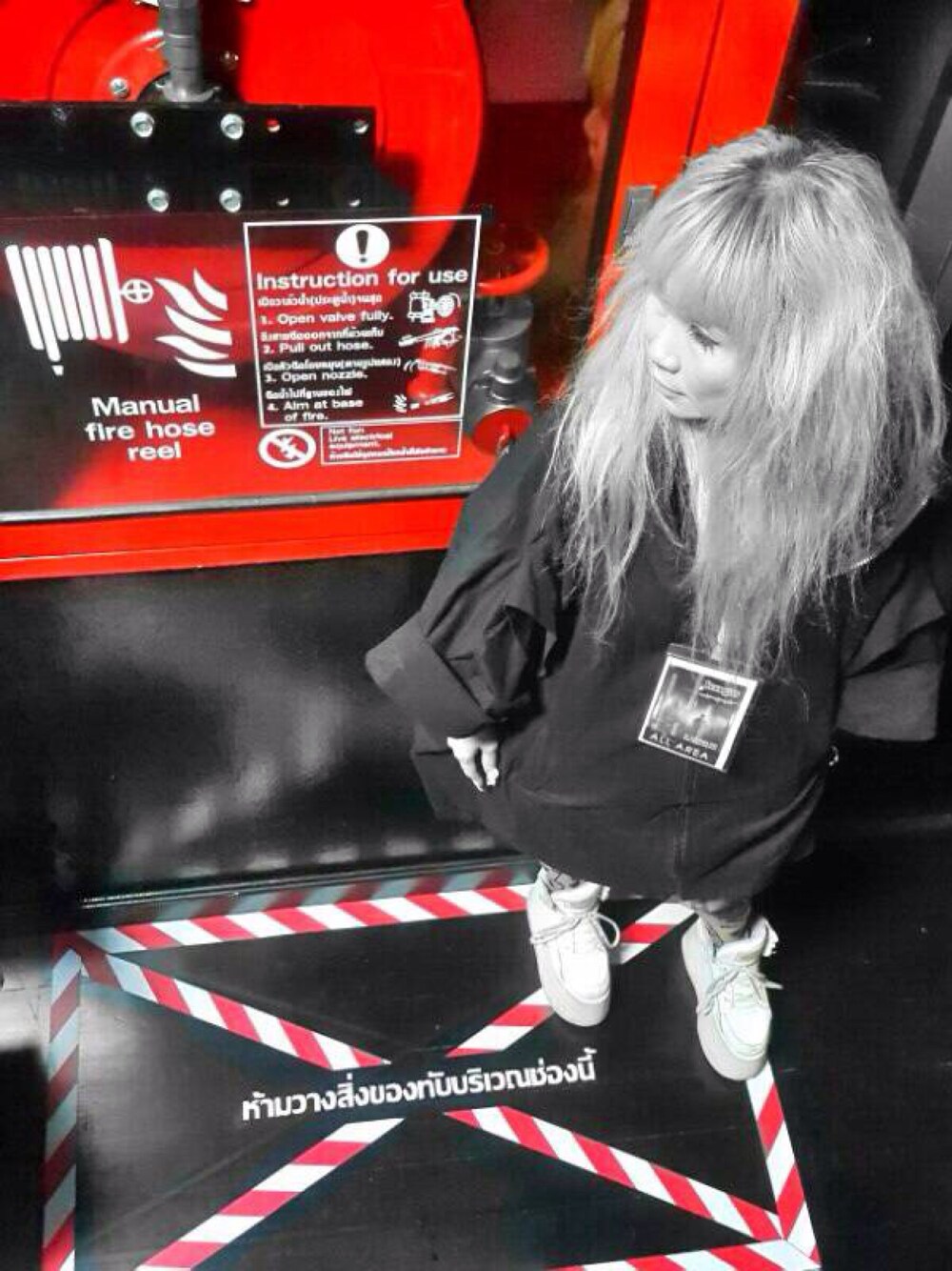 Red spot with fire hose reel. Don't put something here but i'm can stand here!!
