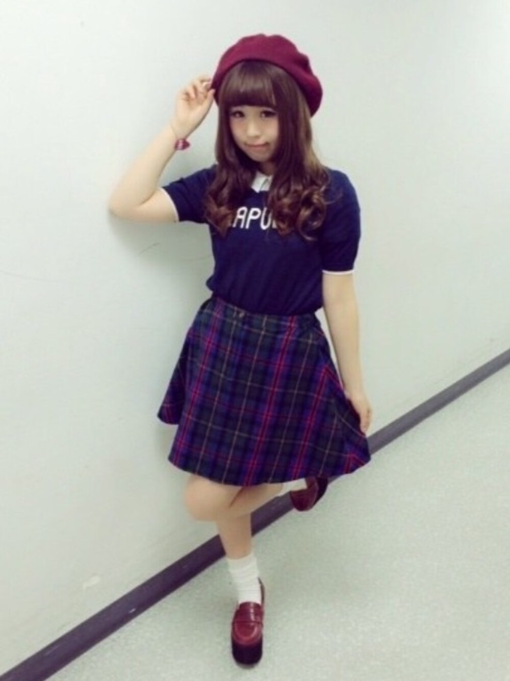 グリーン系のスカート、レッド系のその他シューズを着用したレディースの秋コーディネートの1枚目の写真