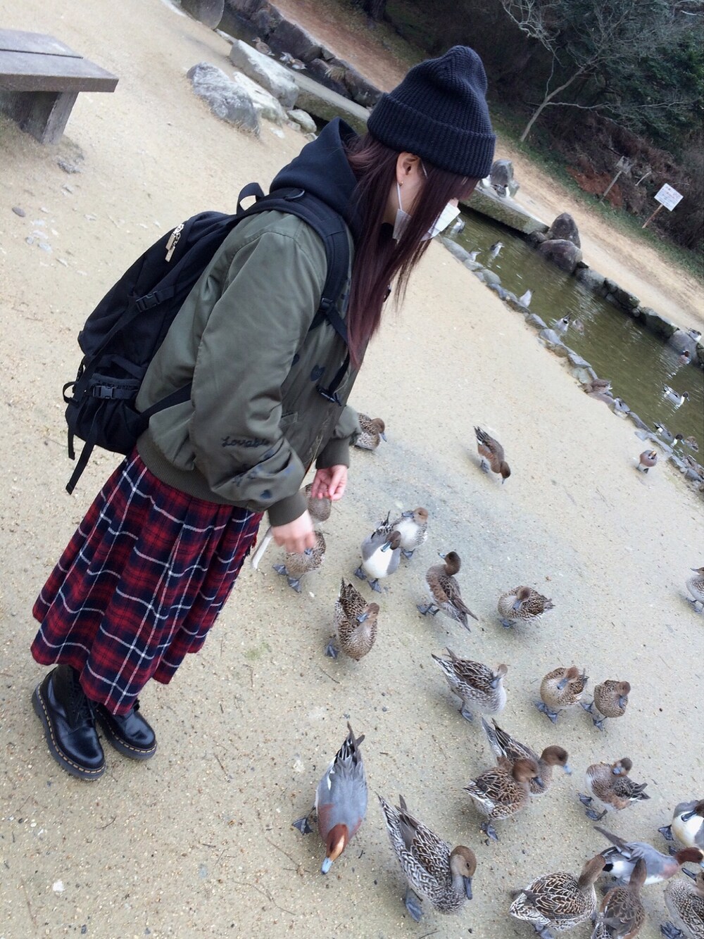 水鳥にパンあげてきた(^◇^) なんだか風邪気味なのでマスクまん。 ほんで4頭身に見える!ちび!