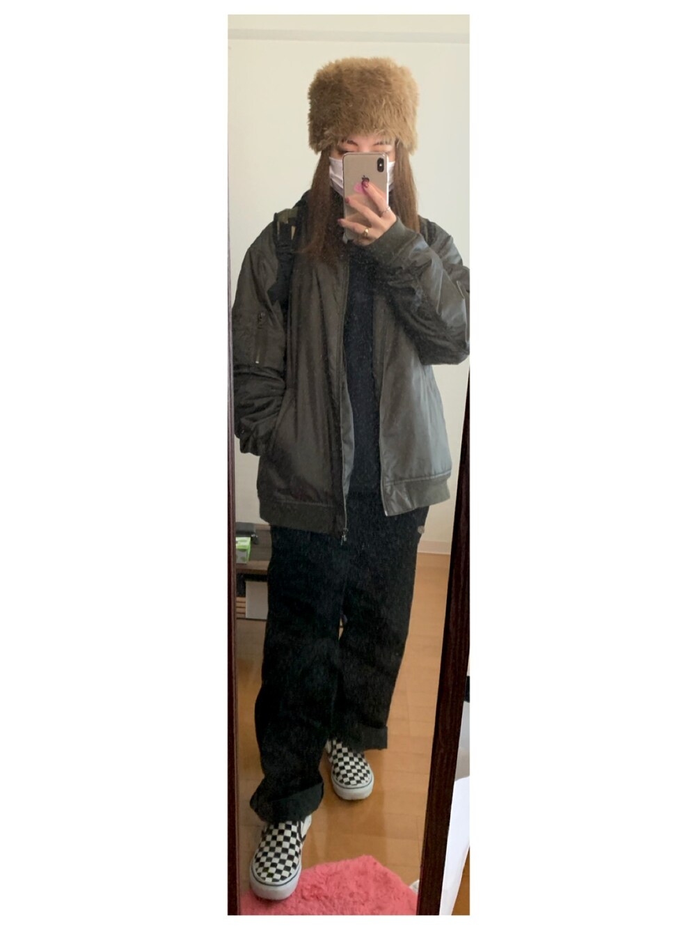 チャンピョンのパーカーにUNIQLOで1000円で買ったコーデュロイパンツ履いてます ファー帽子かぶって髪の毛ノーセットボサボサバレない!🤭✋