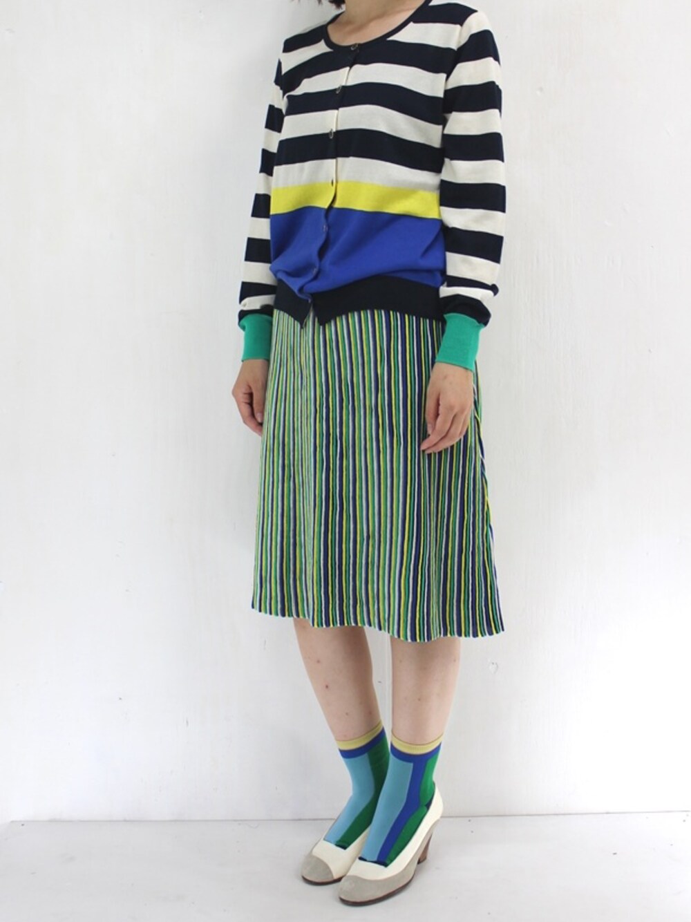 everlasting sprout コットンのボーダーカーディガンと、ニットのスカート。 さらっと着れます。 使い勝手が良いアイテムです。