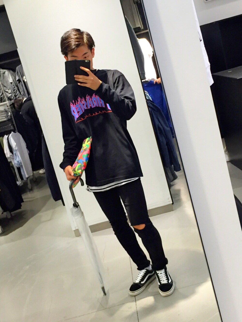 スキニーにオーバーサイズのロンTという最近ハマリのコーデでーす😊 バンズ、オールドスクールも最近きてますね〜 (·∀·)ニヤニヤ