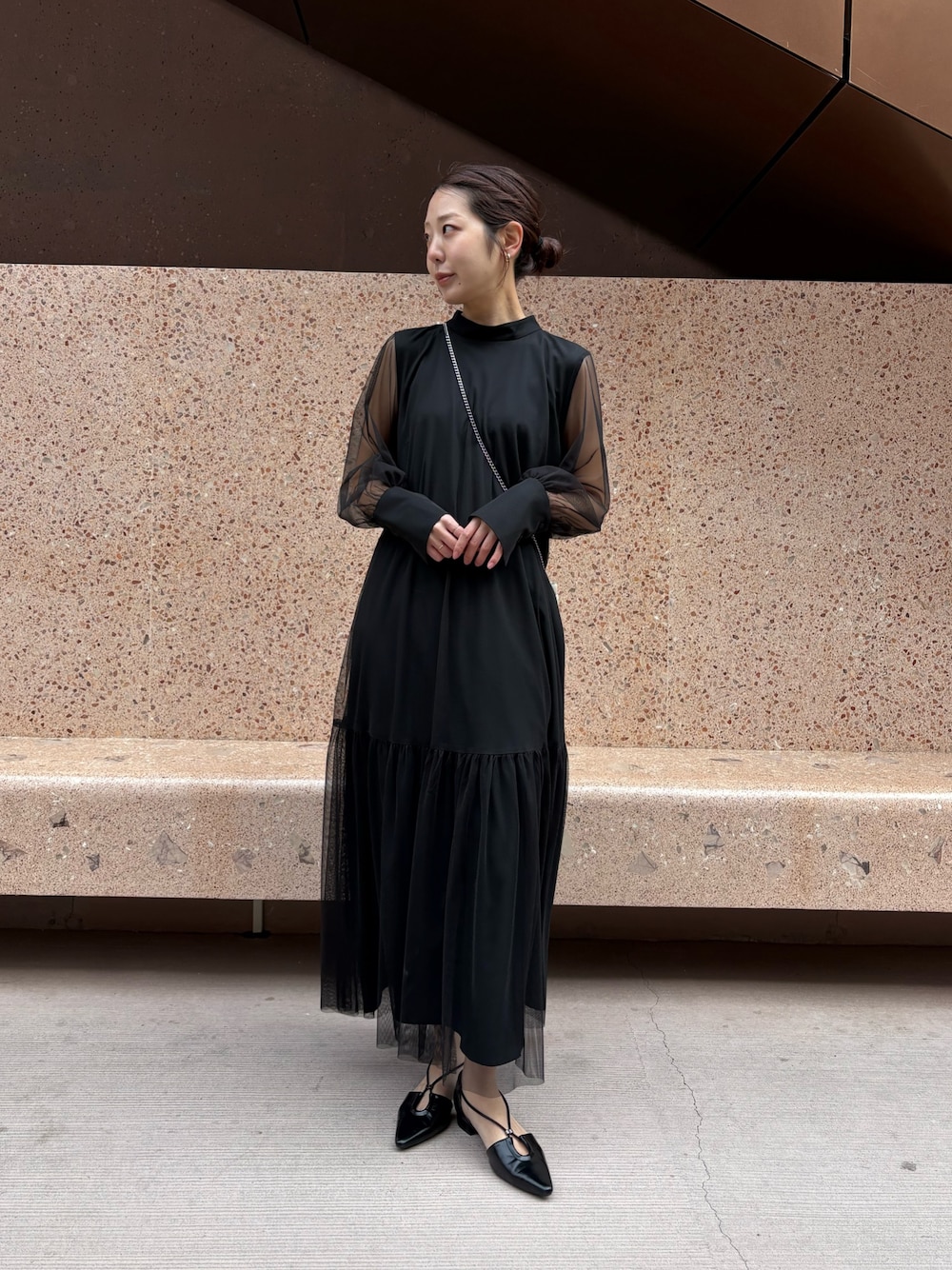 kuri(CAPRICIEUX LE'MAGE)のワンピース「【オケージョンアイテム】【サイズ展開あり】チュールハイネックワンピース」を使ったコーディネート