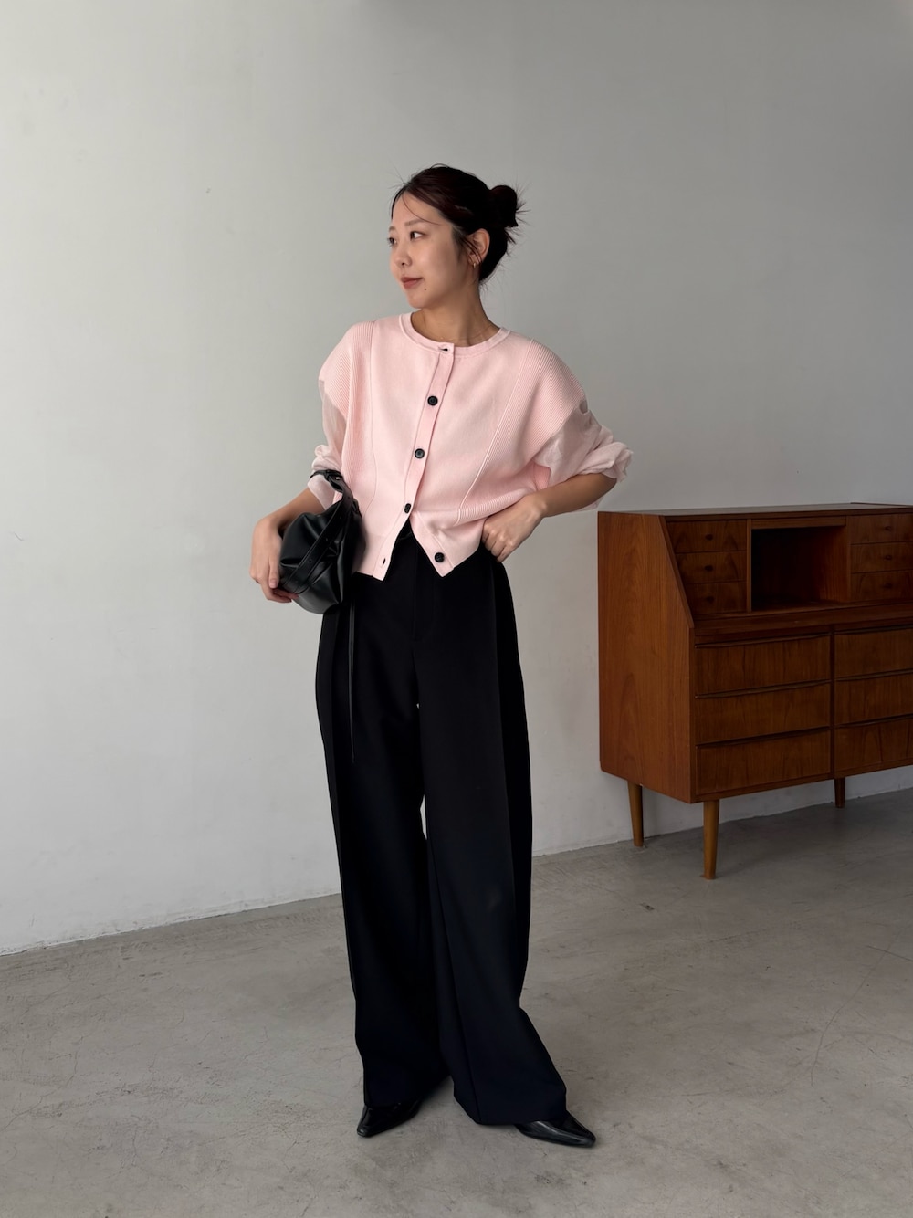 kuri(CAPRICIEUX LE'MAGE)のカーディガン/ボレロ「【WEB/ルミネエスト新宿限定カラー・ピンク】シアースリーブショートカーディガン」を使ったコーディネート