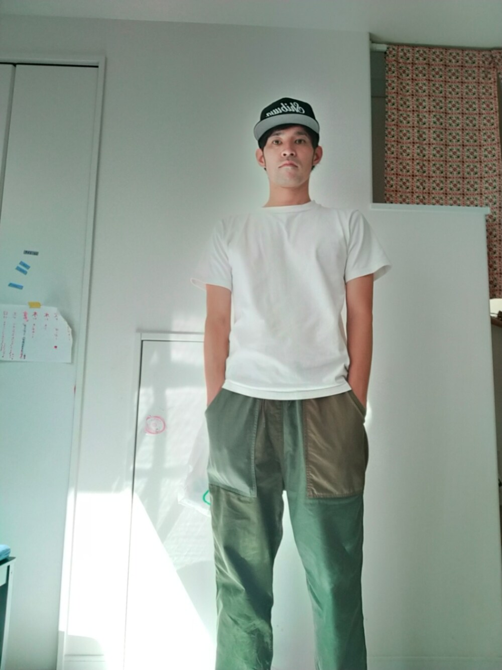 帽子にshibuyaって書いてあるのがオシャレのポイントです。はい。 gunghoのパンツはシルエットが格好いいので2000本は持ってます。はい。