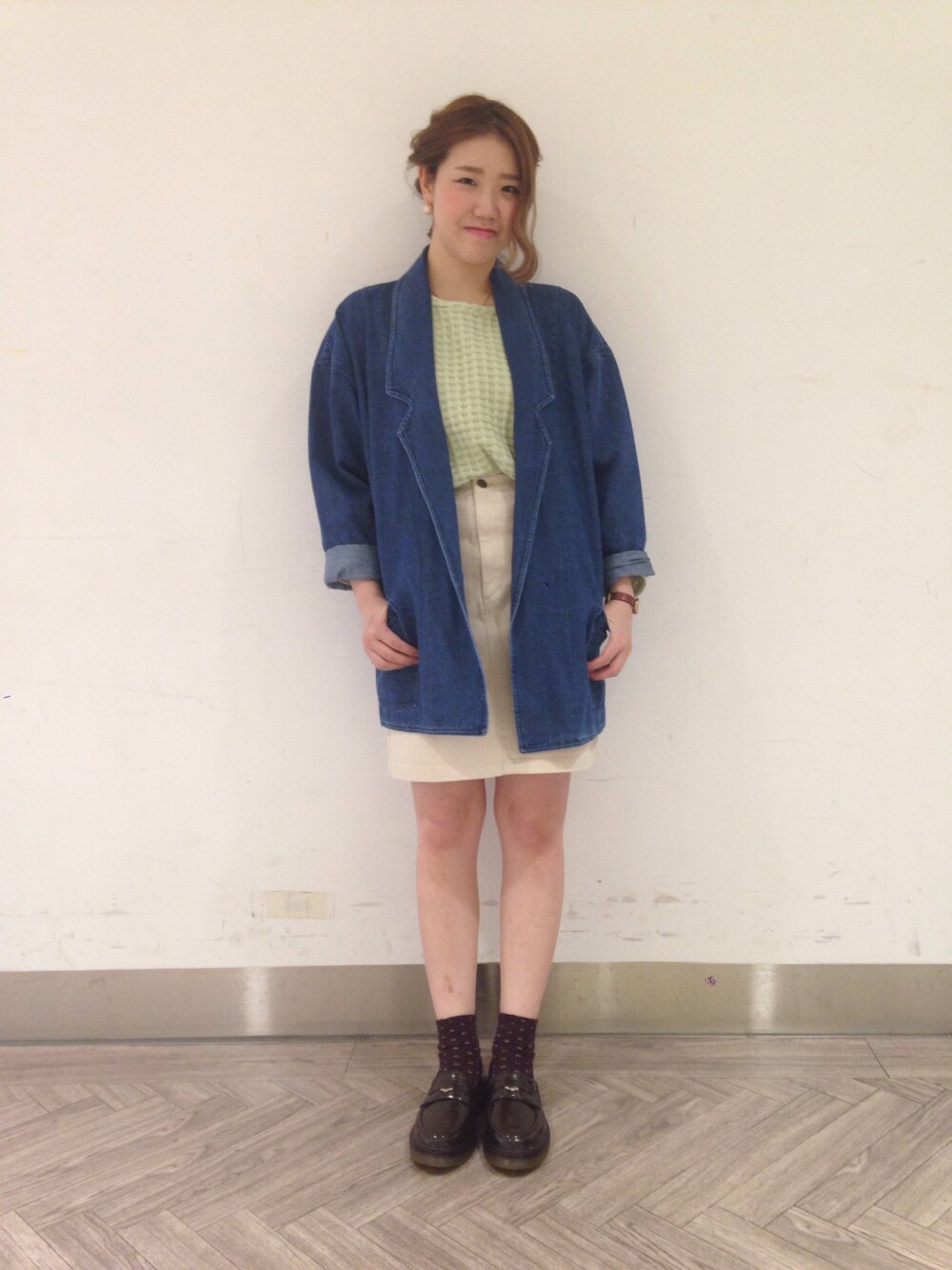 デニムジャケットおすすめ💕 ライトグリーンニットを主役に〜🎶