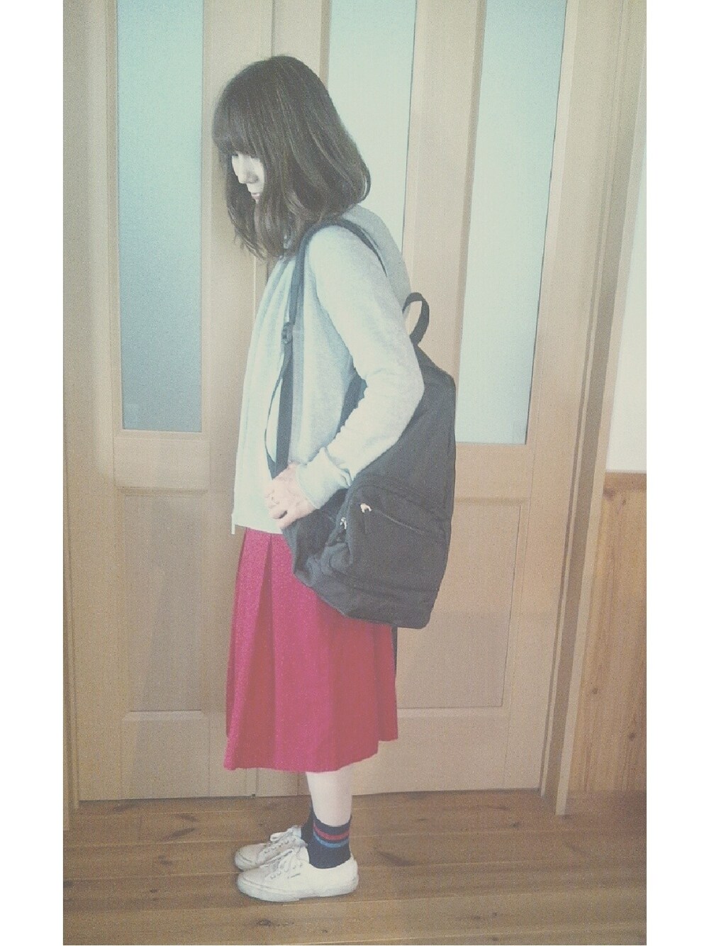ラインソックスでスポーティーコーデ。。* スゥエット*UNIQLO バックパック*GU ラインソックス*靴下屋 スニーカー*SUPERGA