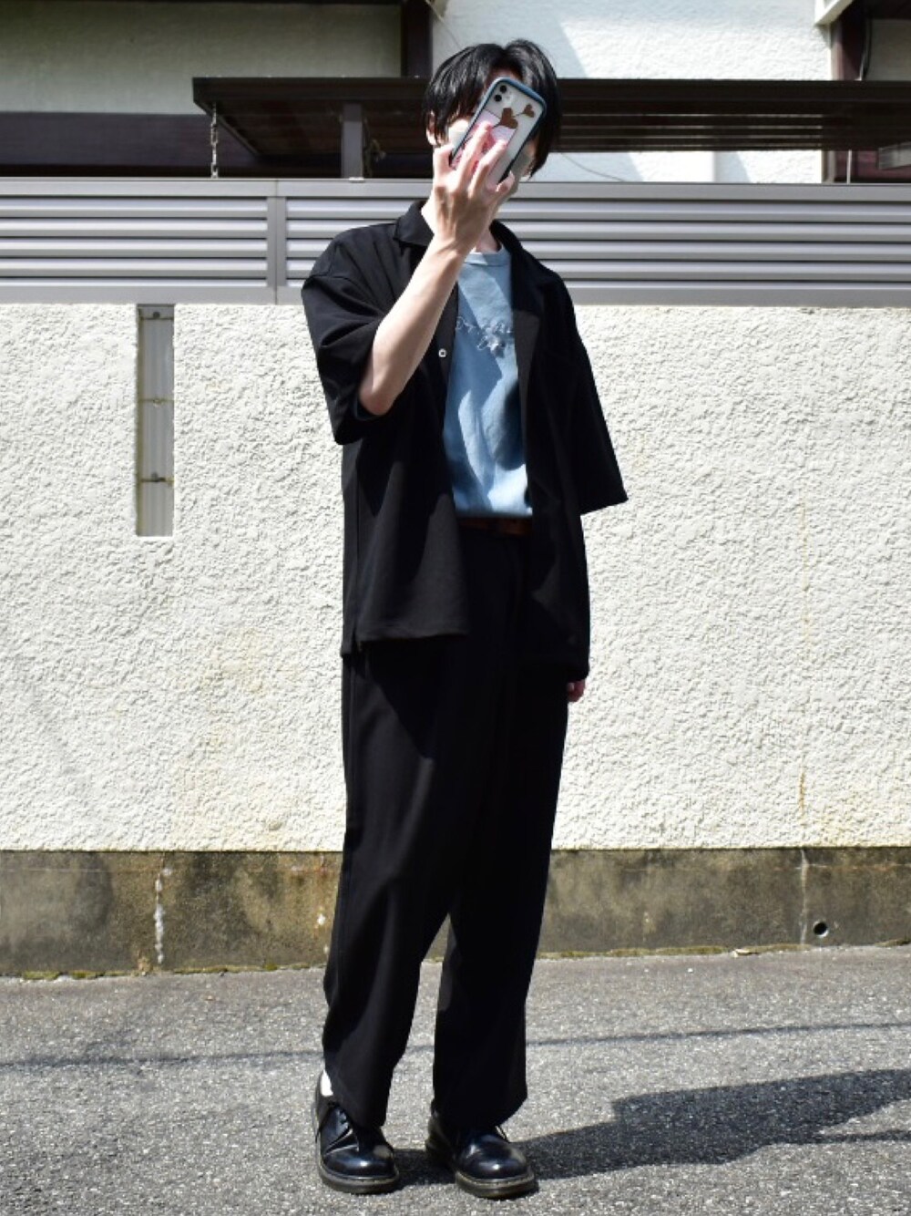 黒に青を加えて、重すぎず爽やかさを感じるコーデ😌