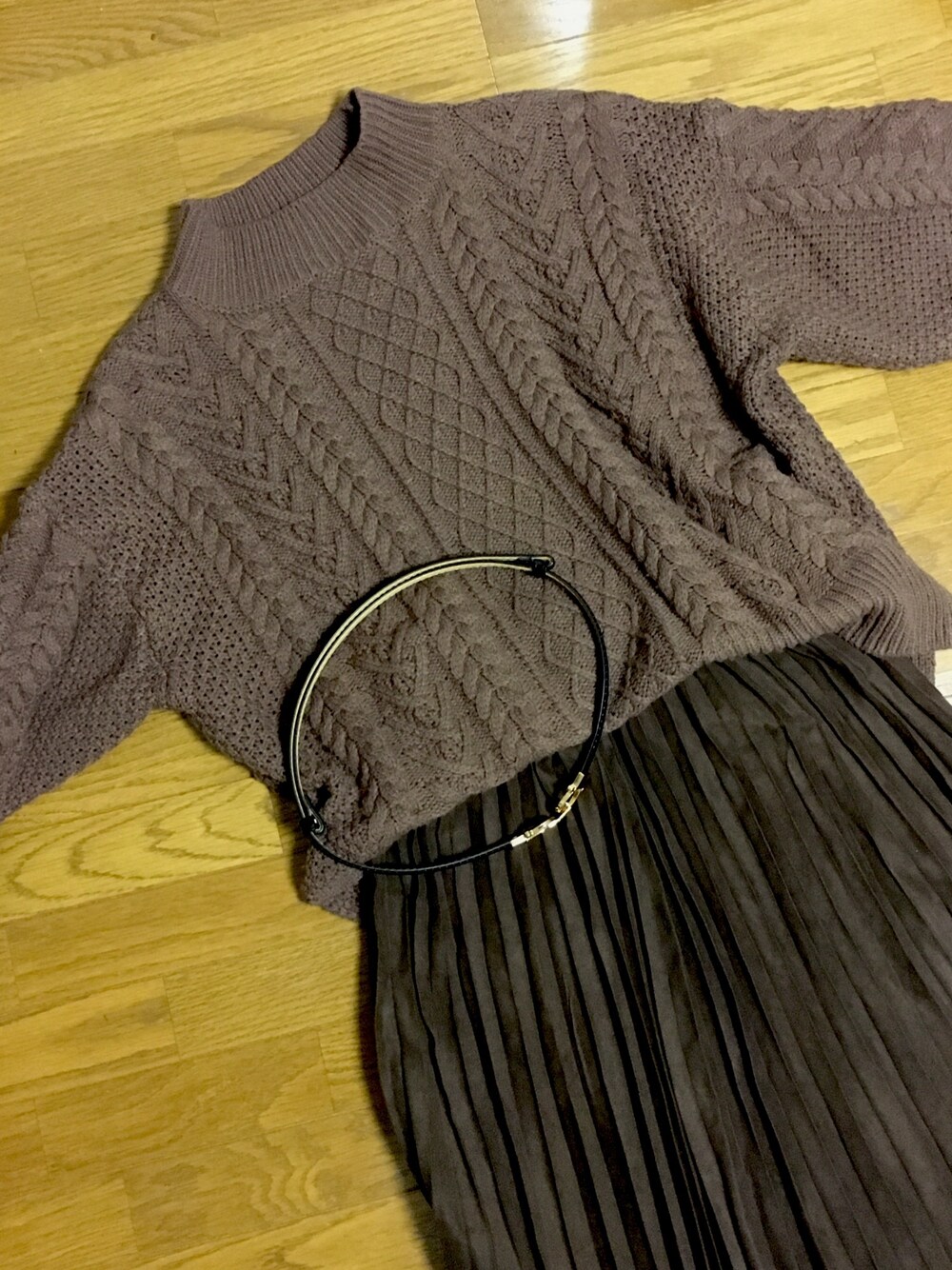 ・ブラウンのセーター ・ブラウンのプリーツスカート ・黒のベルト 🟤ワントーンコーデ