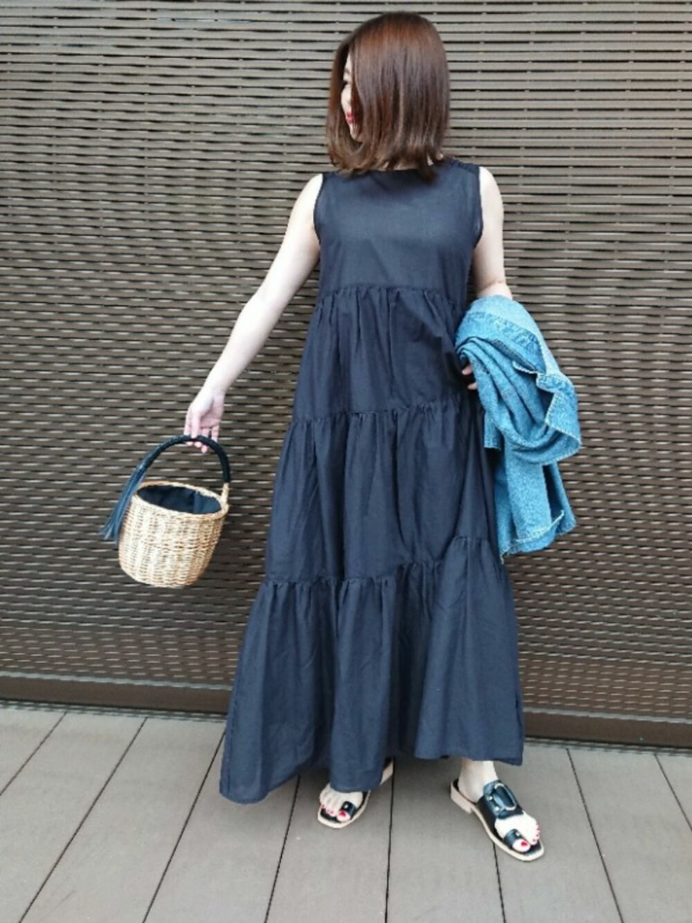 みなさんこんちゃ♡ 昼間暑くて、ノースリーブになっちゃえますね💃 GUのティアードワンピース、着やすくて楽ちんで可愛い😘😘😘