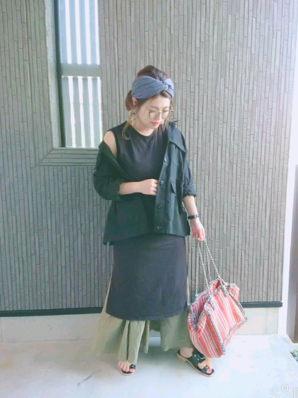 みなさんこんちゃ♡ スリットありワンピースに カーキのスカート合わせました🍀