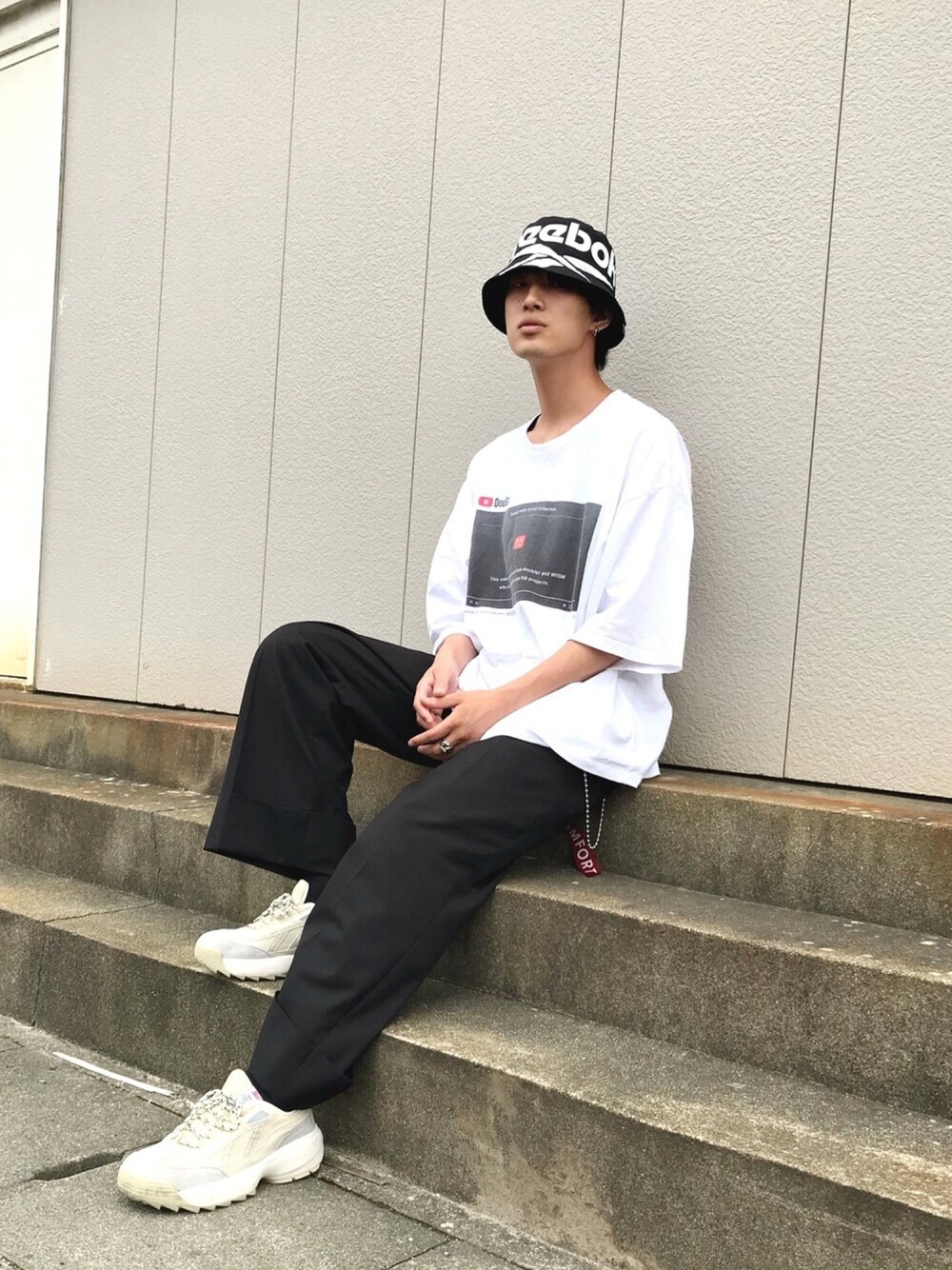 Salix.のスラックスに合わせたスタイリングです。 doubletとWISMコラボのTシャツはXLのオーバーサイズでゆったりと着てストリート感を演出! スニーカーは韓国のブランド! HAT/reebok T-shirt/doublet PANTS/Salix. また次の投稿もお楽しみに🌐