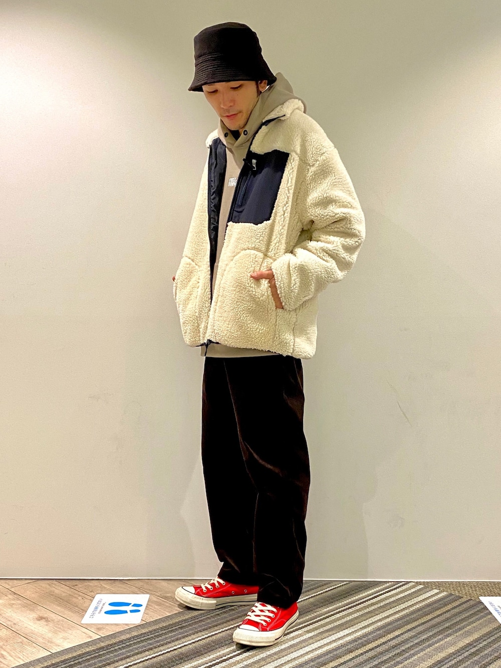 新作のボアブルゾンにファーストダウンのパーカーとグラチミのコーデュロイパンツでコーディネートしました。 パーカーはバックプリントが大きなワンポイントがあるので1枚着としてもおすすめですよ。 ボアブルゾンはこれからの季節使いやすいアイテムですしプライスも手頃なのでまだお持ちじゃないかたは是非チェックしてみて下さい!