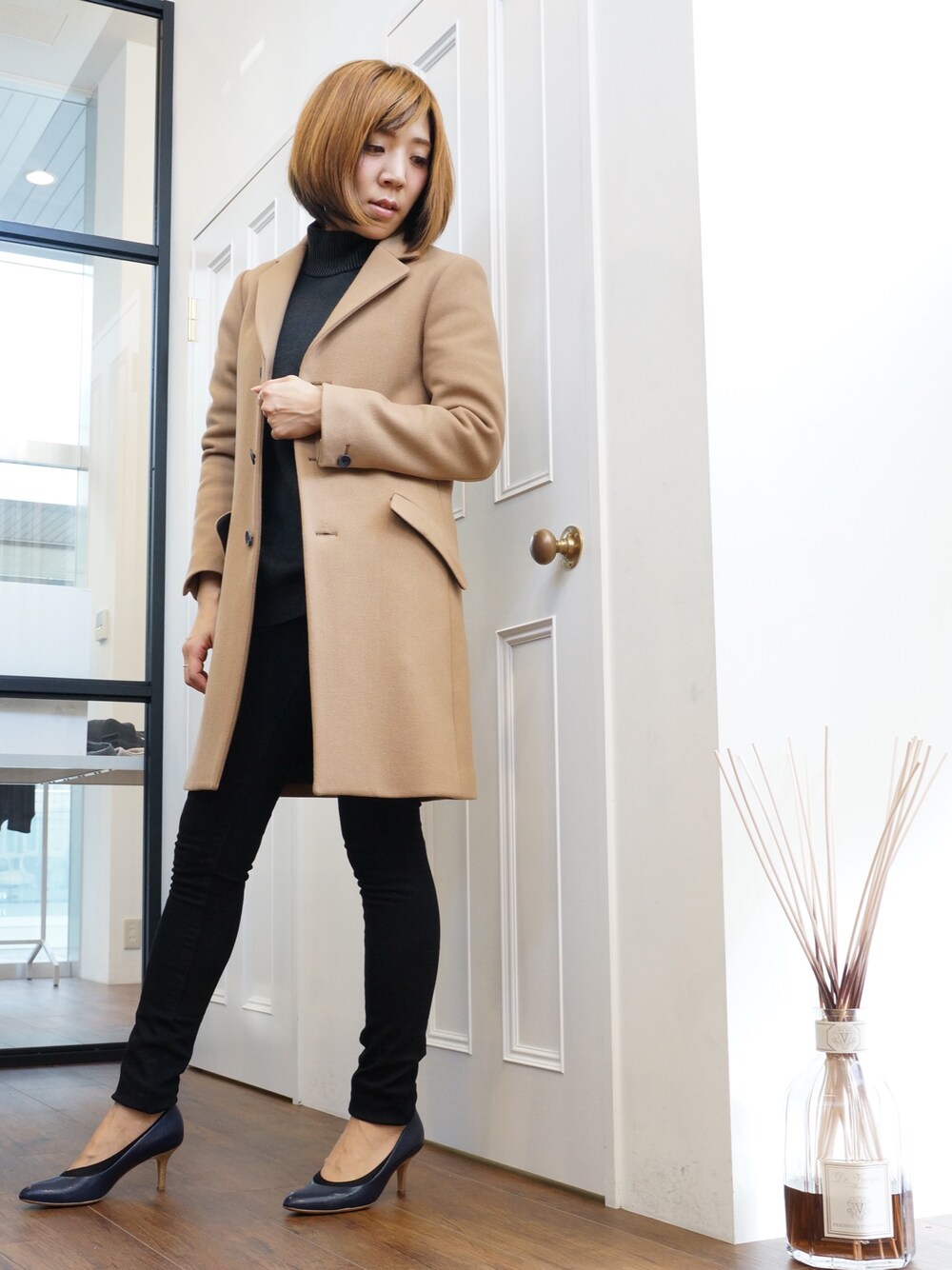 ブラックのSTONE WASH SWEATERにブラックのスキニーデニムを合わせたモノトーンなスタイル。 ハリ感のあるチェスターコートを羽織れば、女性らしさがプラスされます。カラーは今季トレンドのキャメルで。 KUROWOMENS / CHESTER FIELD COAT KURO / 7G KNIT STONE WASH SWEATER KUROWOMENS / Fibro Black One Wash