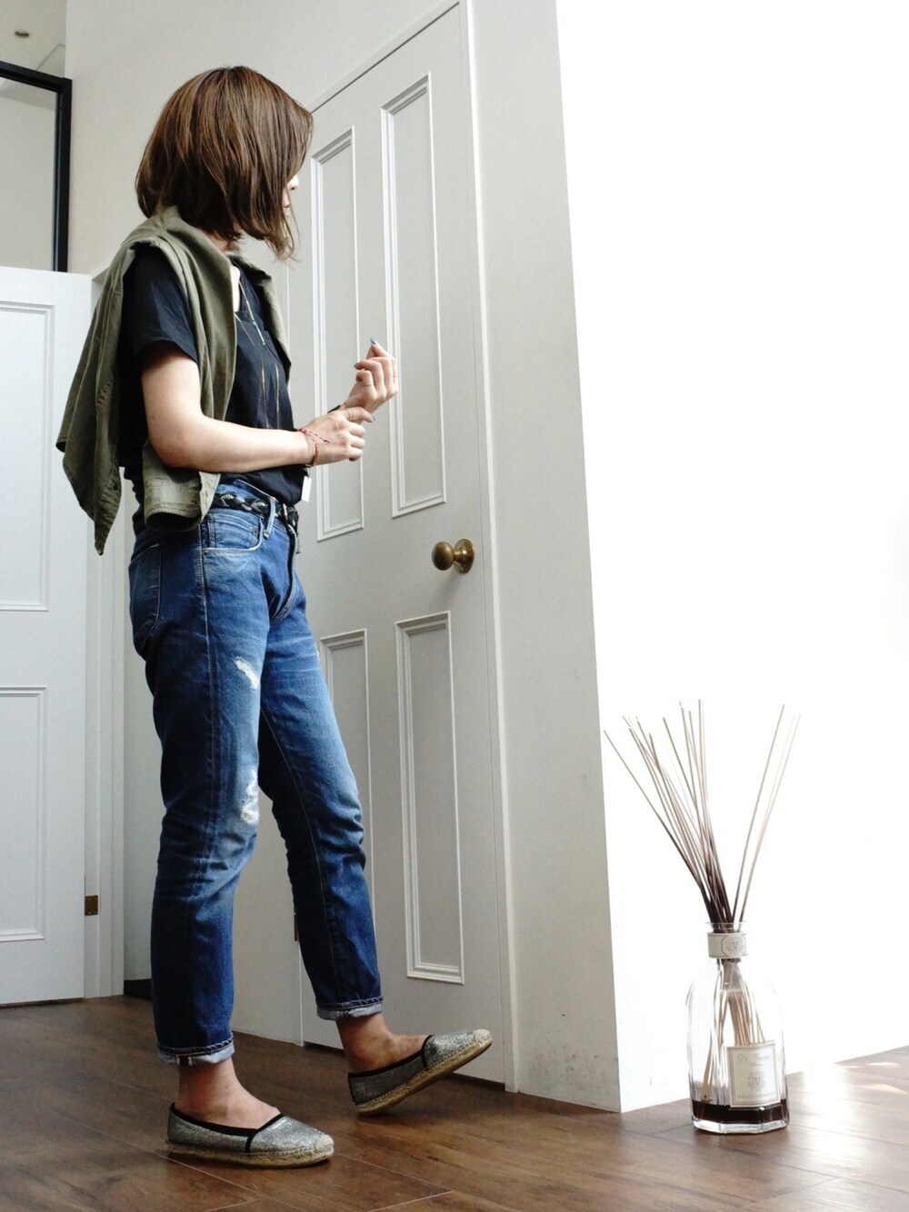 KUROのデニムパンツを使ったコーディネート