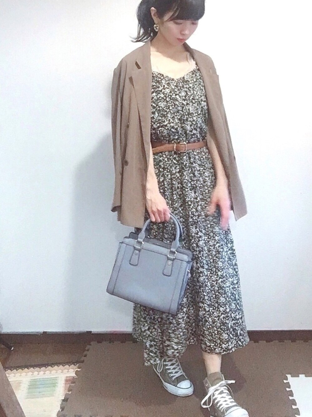 ご覧頂きありがとうございます^_^ 花柄ワンピースに、大人っぽいジャケットを合わせた大人カジュアルコーデです はじめたばかりなのですが、気軽にいいねしてくれたら嬉しいです⭐︎