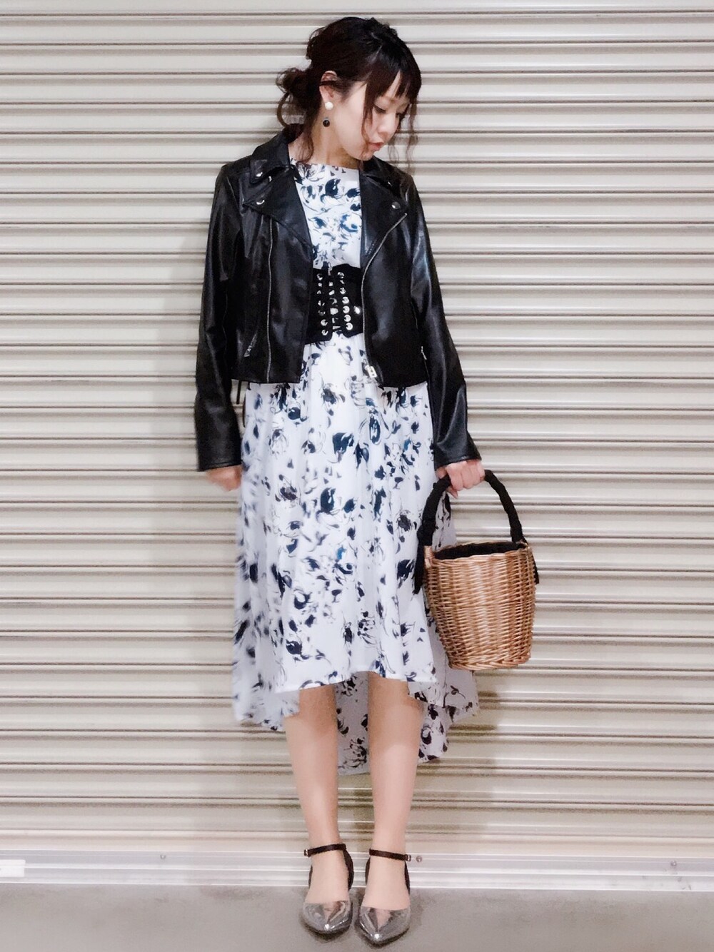 GWに買ったアベイルの花柄ワンピが着たくて着たくて、でもなかなか気温が高くならなくて、ようやく珍しく暖かい日があったので着れました! やっぱり可愛い〜💕💕💕 でも外に出るときは寒いので編み上げがポイントのライダースを。コルセットベルトを合わせて小物は黒で統一しました🙆