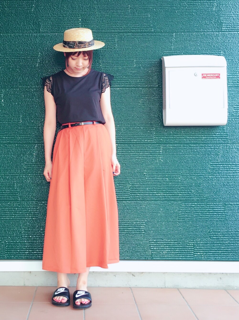 NIKEベナッシで大きく外してみたコーデ。はたから見れば、めんどくさくてお父さんのサンダルで来ちゃった人みたいだけど(´*ω*`)