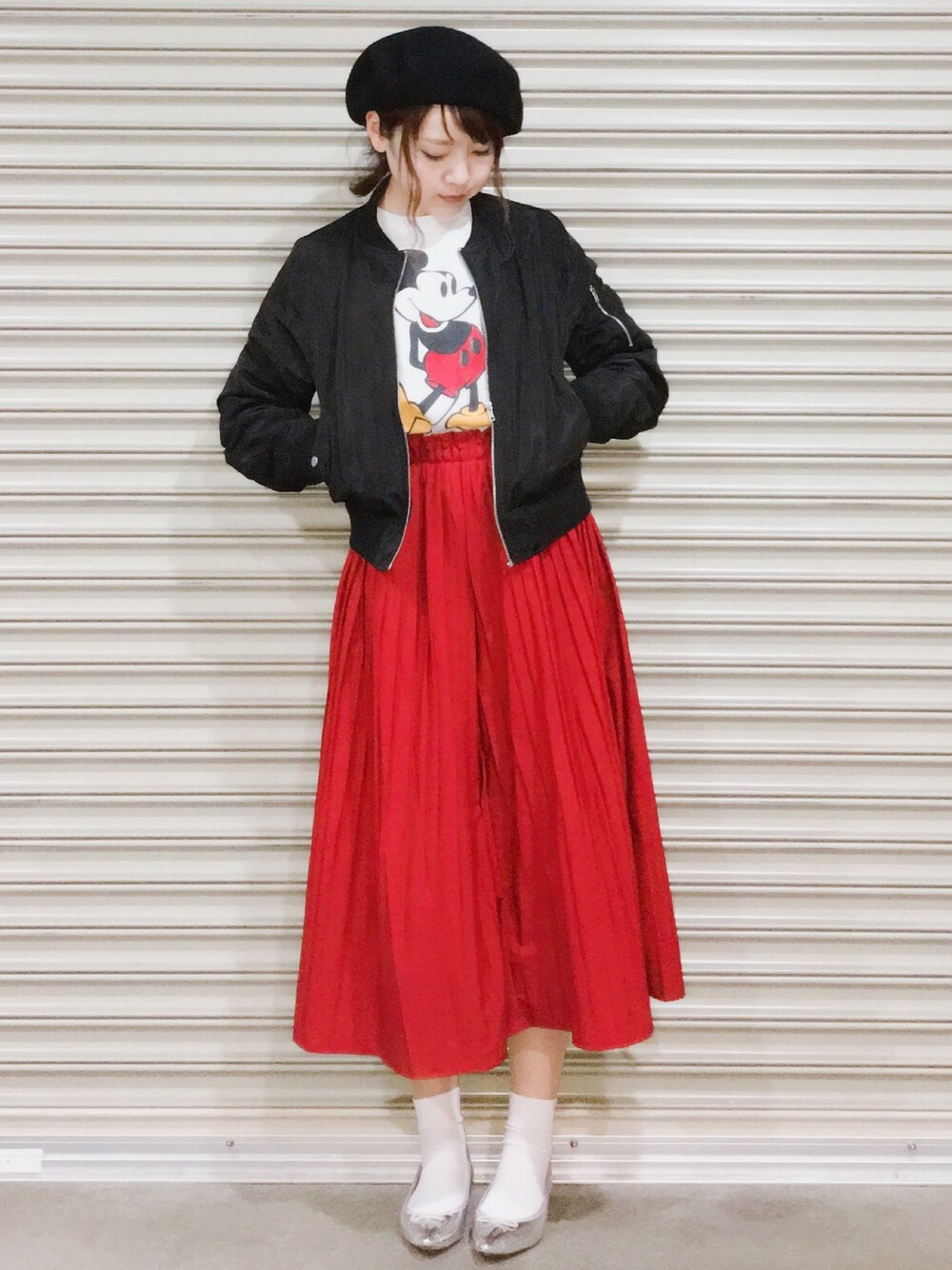 友達と遠出したときのコーデです🚘 レトロガールで最近買ったプリーツのワイドパンツはふわふわしてて広がり具合がお気に入りです👍✨色もビビッドな赤でポイントになりやすいし使いやすい!春から夏にかけて派手な色をたくさん使っていきたいな〜🎈🎈🎈