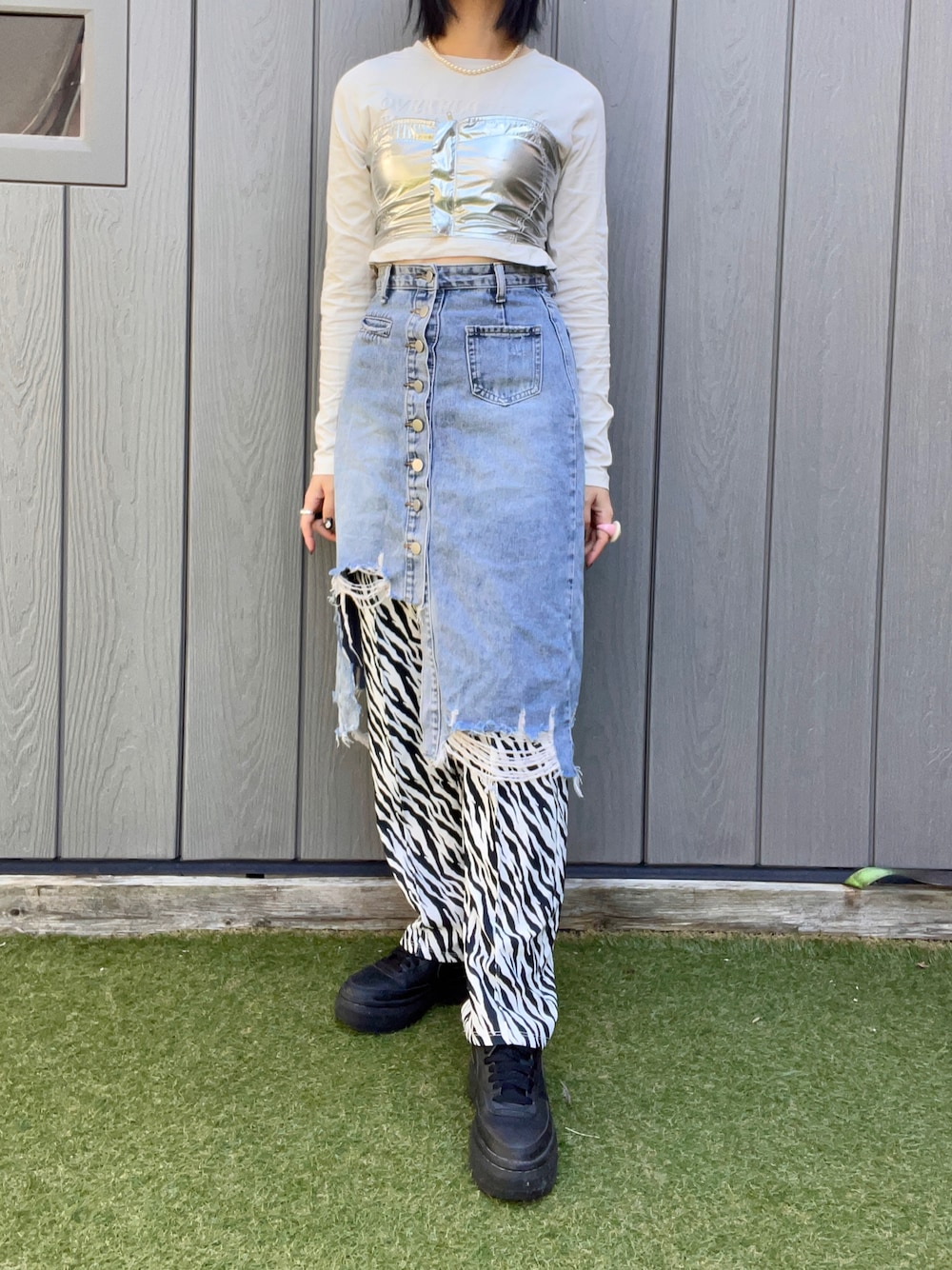 シルバーのビスチェがお気に入りです。 スカートとパンツは古着屋さんでみつけました🦓