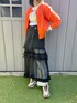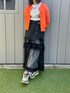 オレンジのカーディガンをポイントに ボトムはとにかく重ねてみました🍊