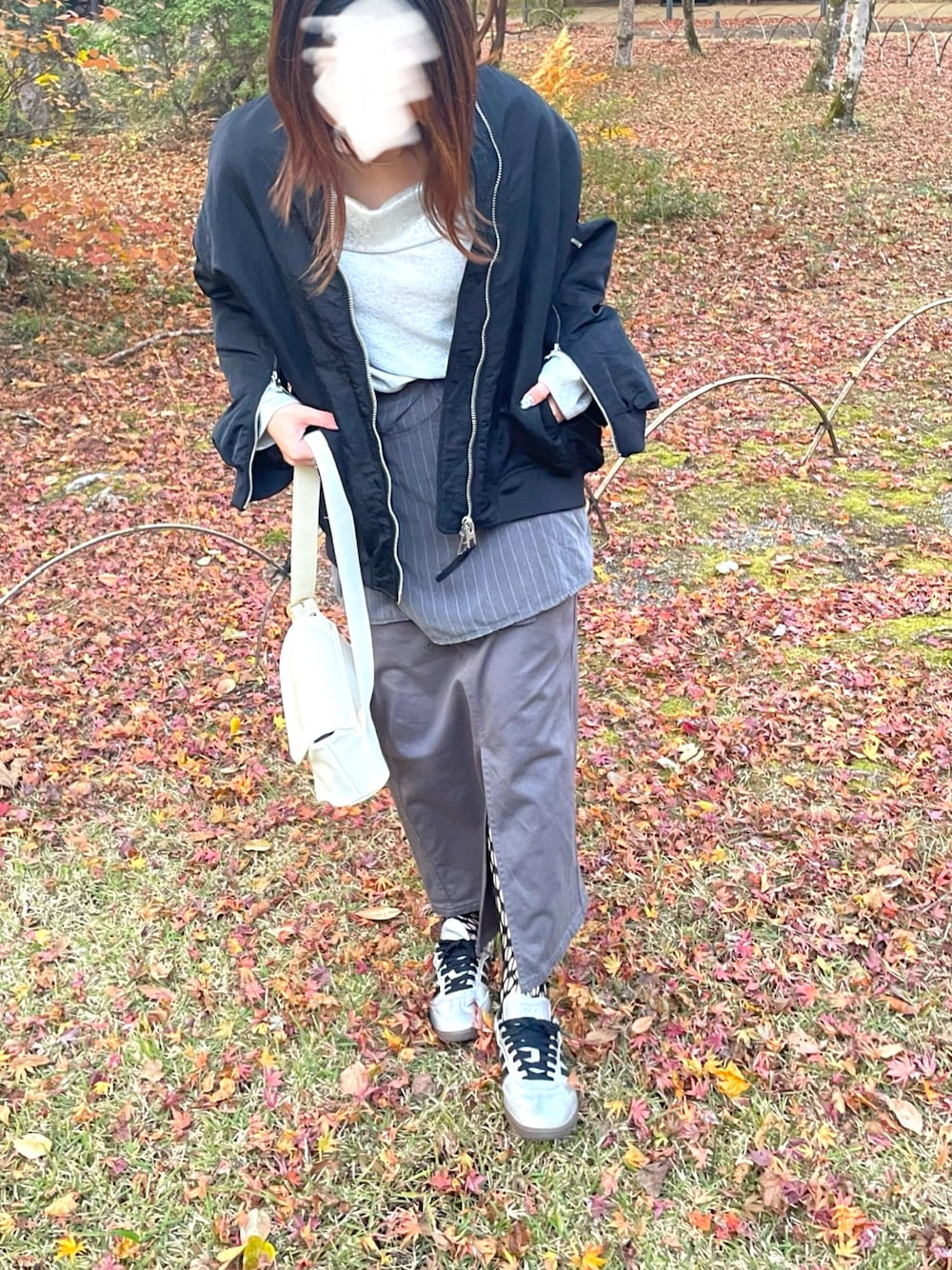ZARAのブルゾンは袖口がZIPがついていて 個性的で気に入っています。 スニーカーに網っぽいタイツのスタイルも好き。