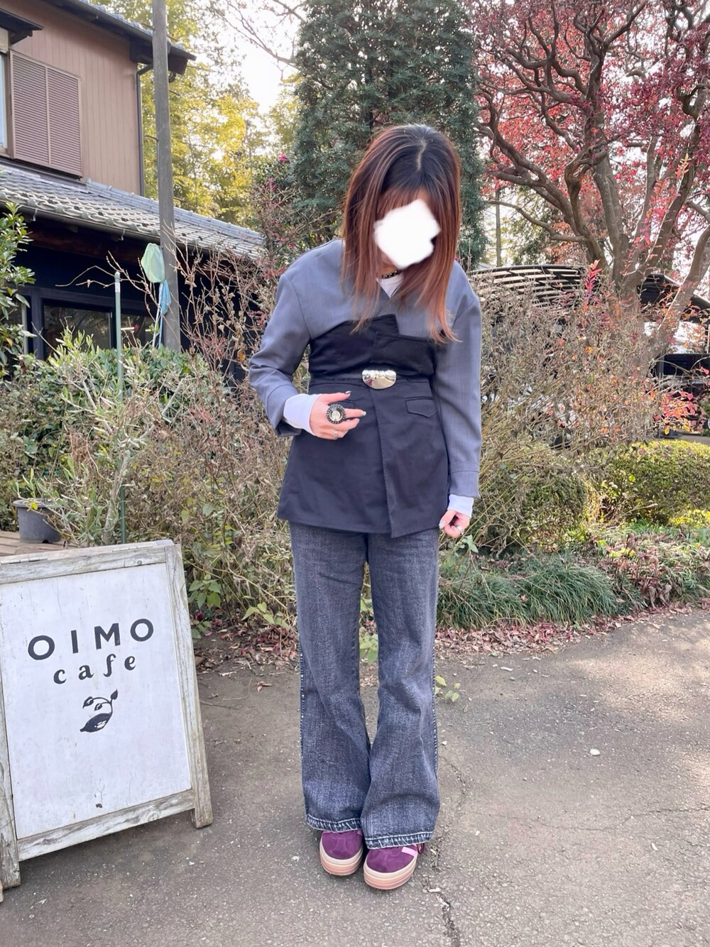 ジャケットにビスチェを重ねました。 ポイントにシューズはadidasのハイカットを合わせました。