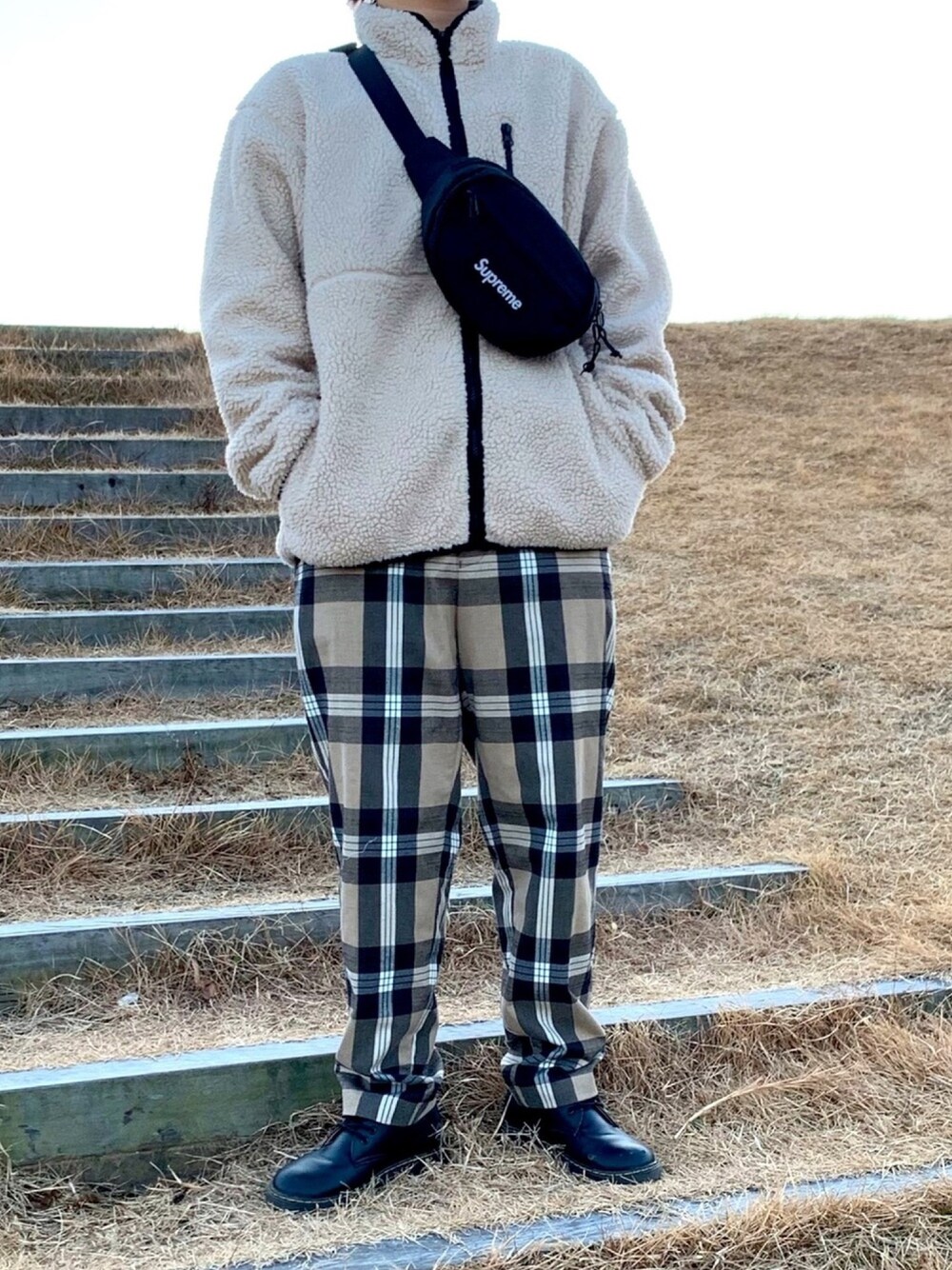 寒くてなかなか朝起きれない… ってことで、ギリギリまで寝て とりあえずのボアジャケットとチェックパンツ