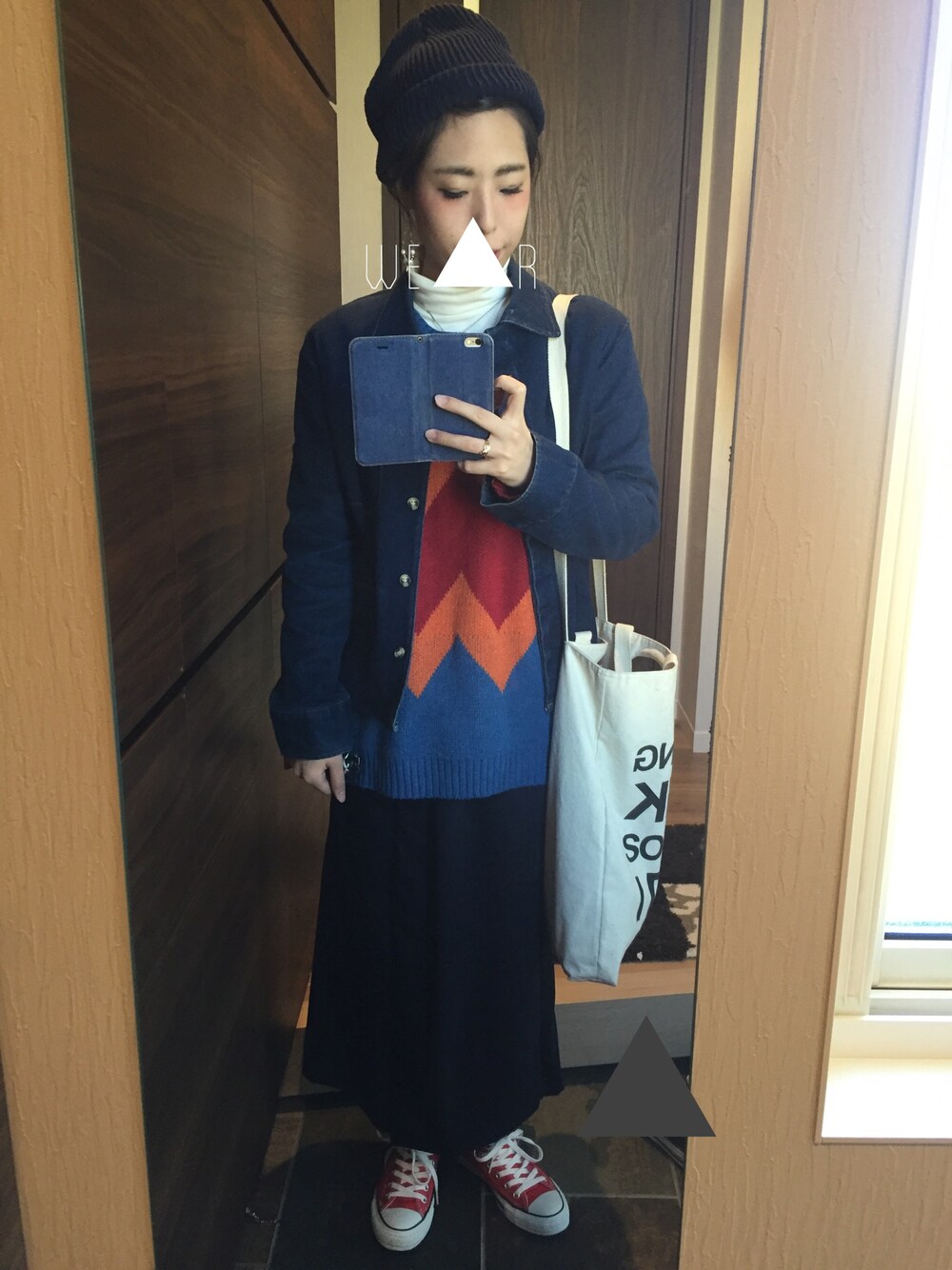 昨日のデニムジャケ再び、、 今日は晴天ですな🤘🏻🌞 結構前にさんねこで買ったニット。 一目惚れやったけど着こなしがいまいち分からない、誰か教えて〜 な、本日のコーデ(なが)