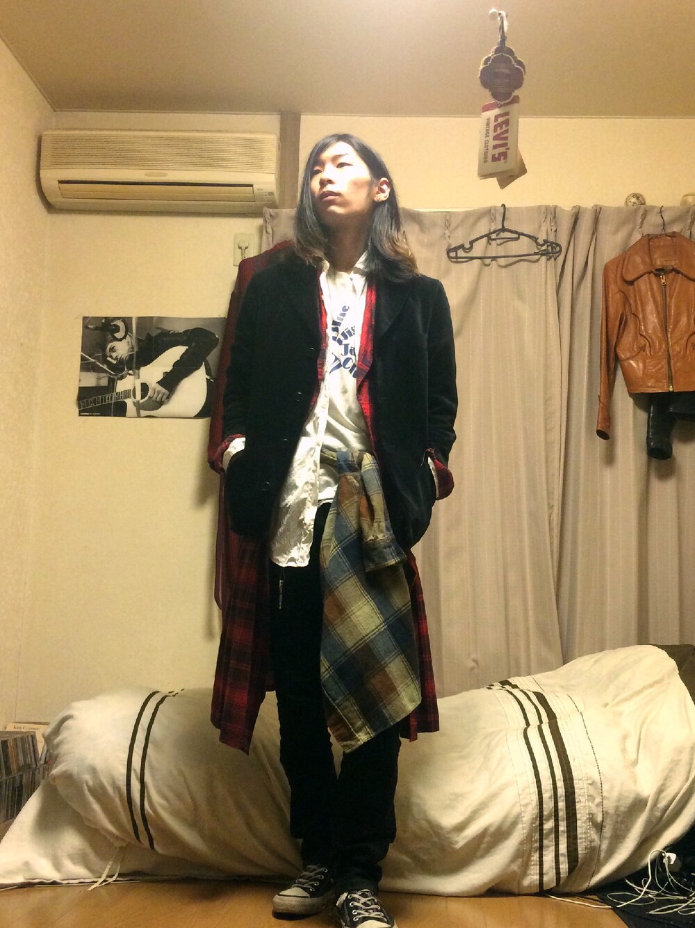 イージーパンツ、持ってません。 寝巻きはLevi'sの501か517なので僕にとってはデニムがイージーパンツなのですがそれは卑怯なので今日もピックアップはお休みです。 せっかくWearをやっているのならレディース方にも使えそうなコーディネートはないかと様々な方のコーディネートを見させて頂いております。 今日は女の子がよく穿いている二重になってるスカート(ちょっと名前がわからないのですが透明なスカートと色の付いたスカートで二重になっているやつです)それからなんとなくアイディアが浮かんだので実行してみました。 スカートやふわふわしたような物は当然持っていないので、今日も好き勝手にコーディネートしています。 細身のズボンを穿くのは久しぶりです。貧弱な身体が浮き彫りになってしまうので体のラインを隠せる太みのシルエットの方が好きですね。 最近ユーチューブで格闘技の試合を見ていて、改めてマッチョな男の方がかっこいいと思いました。 自分はビリーズブートキャンプをやっているのですがなかなかマッチョには程遠いです。 変な時間ですがこれから原宿に行ってきます。 帰りにマリオンクレープを食べるのが楽しみです。