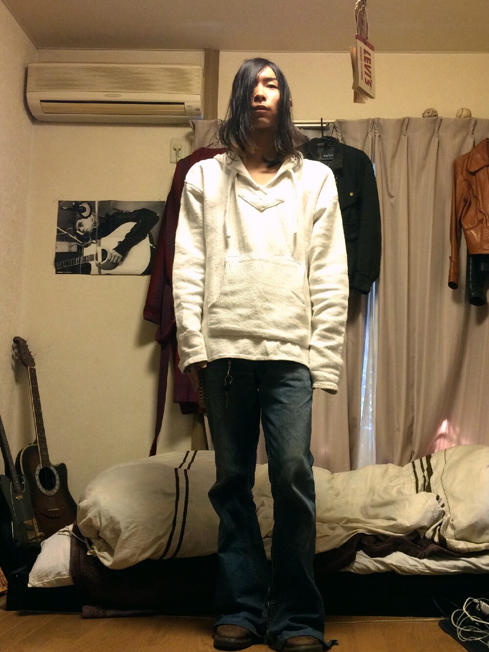 おはようございます。 ピックアップタグもなくなったようで、日付変更時のコーディネートアップの楽しみがなくなってしまったので日常コーディネートをあげていこうかと思います。 と言っても、平日はだいたい通学時の格好ですね。 気張ってオシャレすることもないのであまり重ね着などしなくなってしまうかもしれません。 このパーカーは後ろ姿も見て欲しいので失礼ながら臀部を向けてしまっていますがご容赦ください。