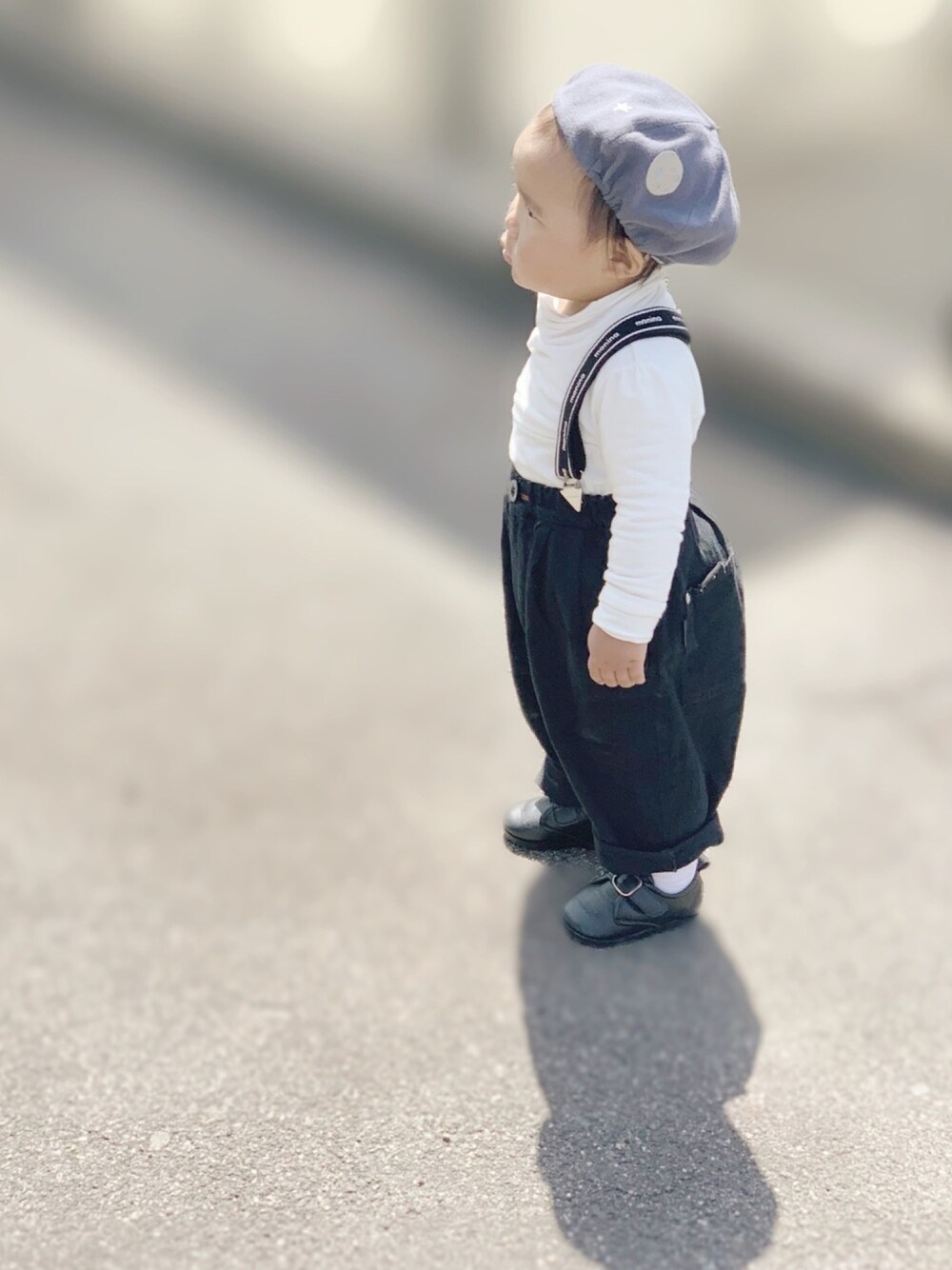 ⚘⚘ お出かけコーデ⚘⚘ 黒を着せると男の子感増しますね☻ັ パパのお気に入りジャケットを久しぶりに着せました◎