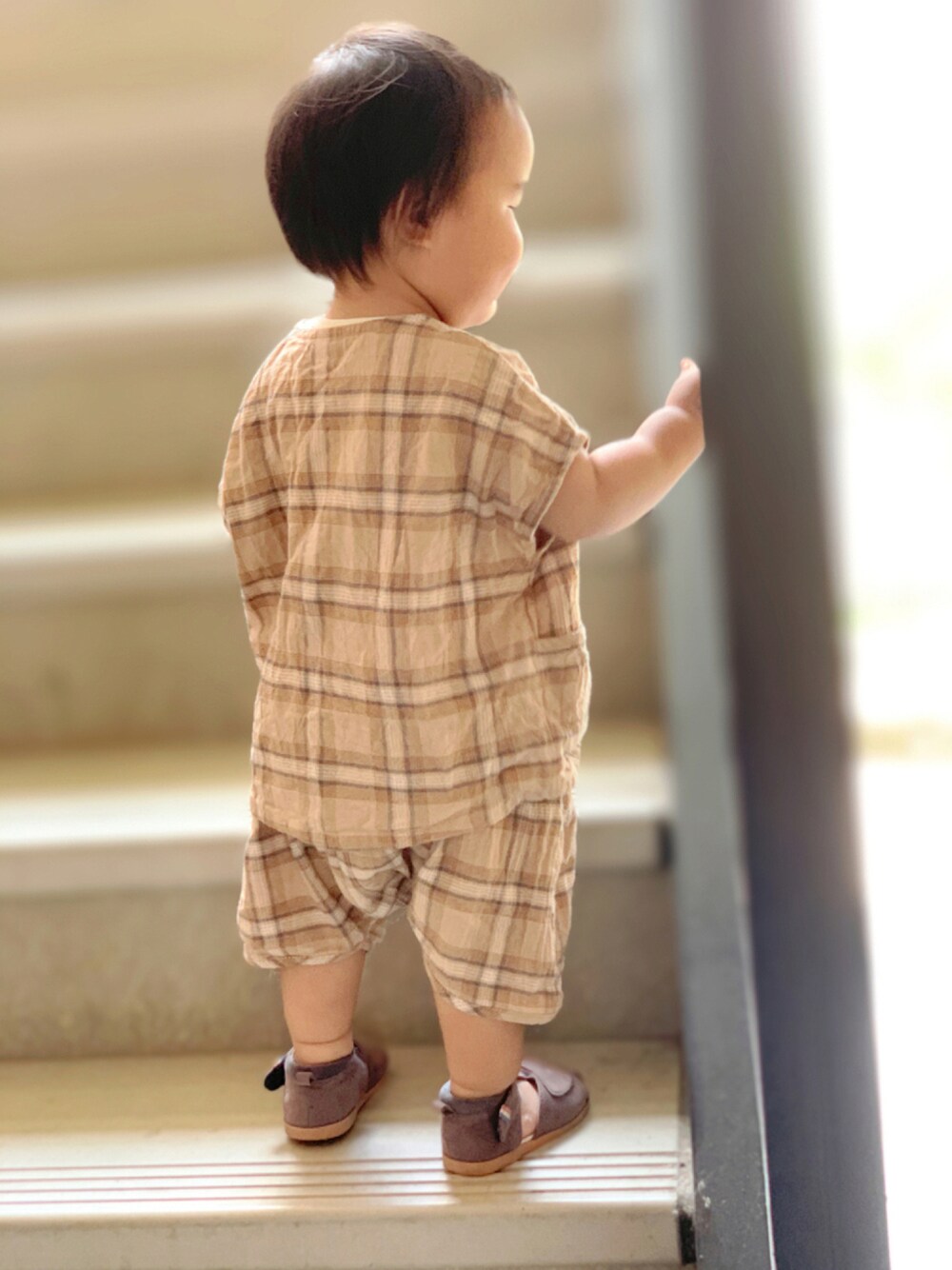 ⚘⚘ チェック柄のセットアップ◎ トップスはinしても出しても可愛い☻ັ 麦わら帽子かぶってたけど脱ぎ捨てられました😂