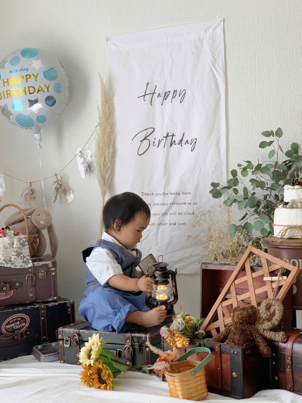 ⚘⚘ birthday photo⚘⚘ 前回のpostのジャケットなしver. セットアップは単体でも使えるのが良い◎ この写真が1番フォトブース見えますね。 後ろのタペストリーは作ったけど それ以外は家にあるものだったり100均で買ったもので準備しました◎ クレイケーキは去年の使い回し笑