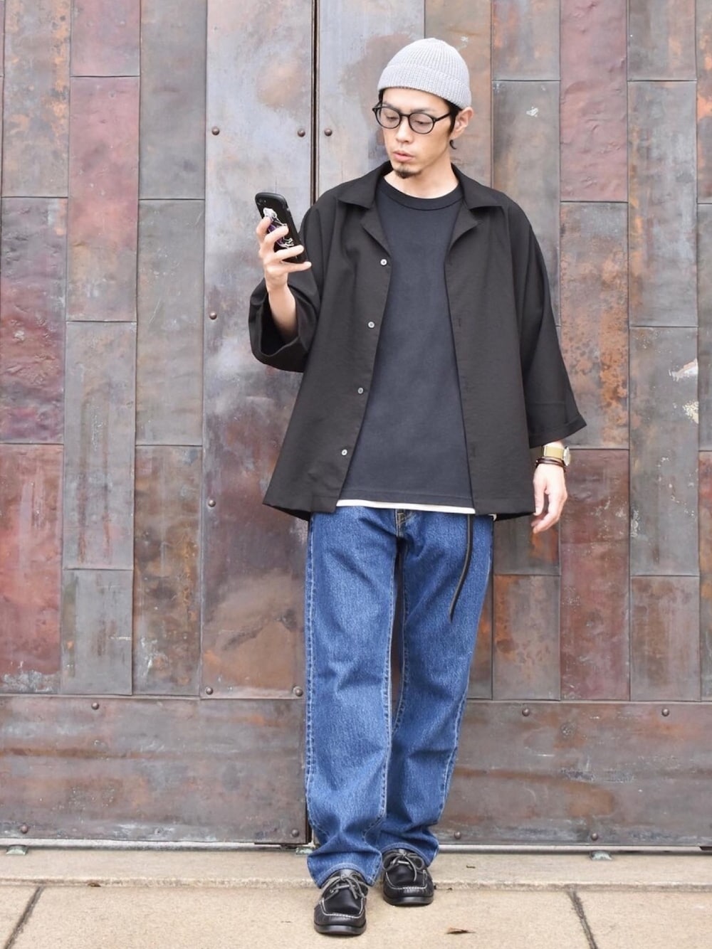 おはようございます➰😊 オープンカラーシャツを シンプルなデニムで。