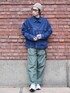 オーバーサイズの デニムジャケットにベイカーパンツ。