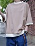 【niko and…】 ニットリブ付き布帛Tシャツ 布帛生地にニットの襟、袖口、裾リブの ついたプルオーバー。 快適な着心地で一枚着でもアウターイン としても使いやすいアイテム!