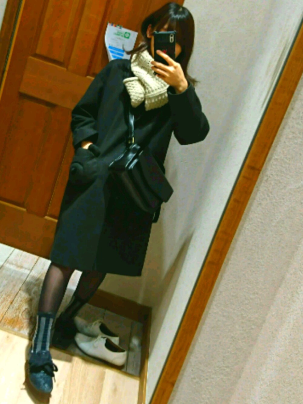 母が試着している隣でパシャリ🐻 最近はこのコートばかり着ています。 やはりモノトーン好き( ´_ゝ`)