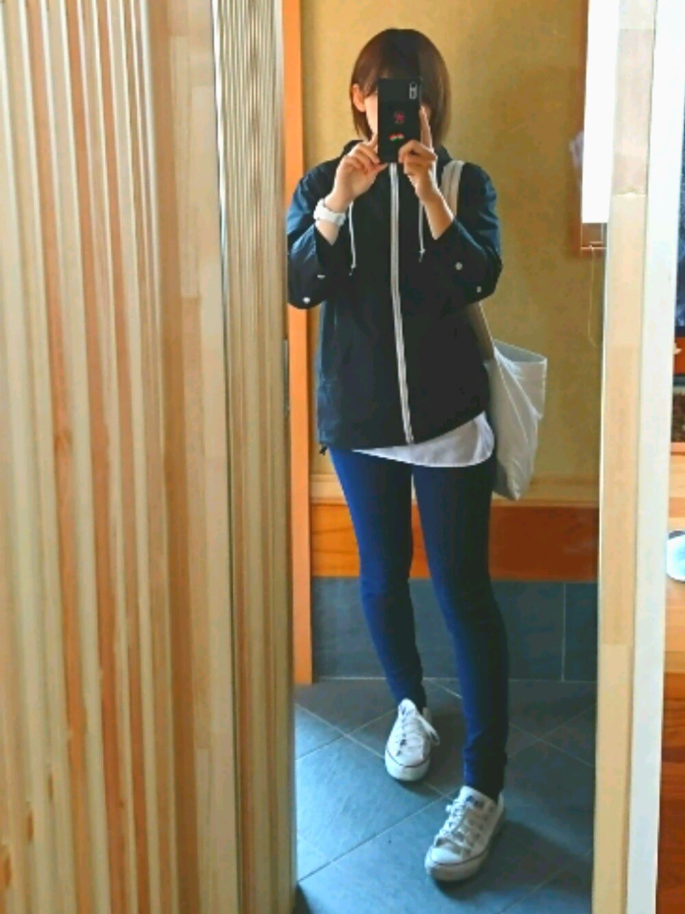 お仕事着👚 プレゼントでもらった マウンテンパーカー! 春っぽいアウターが欲しかったので、ありがたい🙏🌸