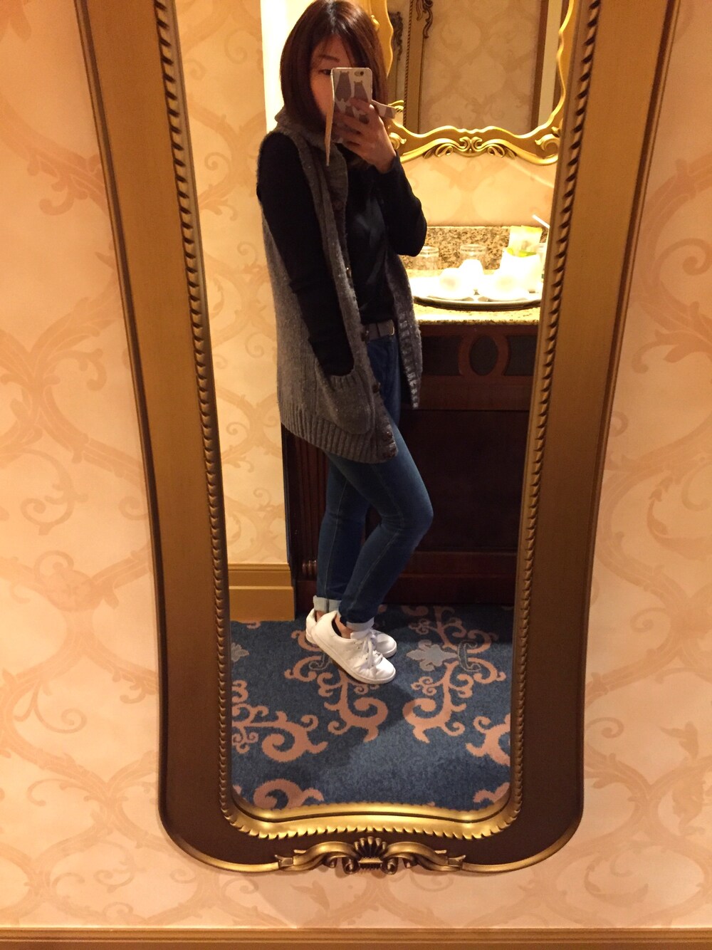 ディズニーでした。 少し寒かったので、ベストを羽織りました