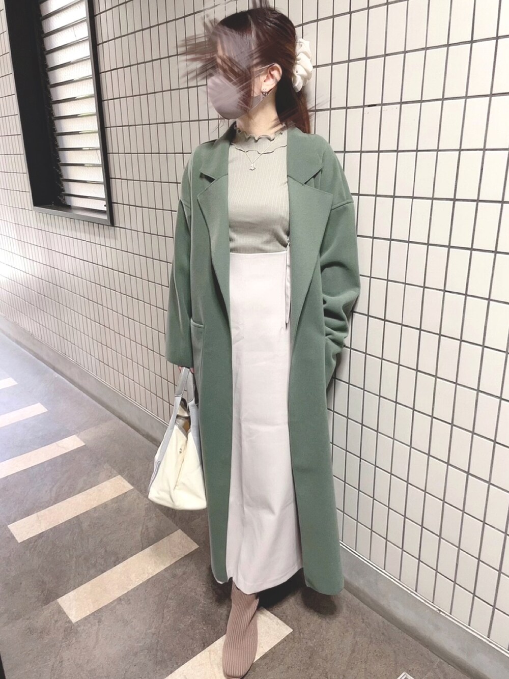 グリーンでコーデしてみました♪ コート、スカートの丈感もちょうど良かったです☺︎ 今季はニットブーツを沢山買いました! 歩きやすくて可愛くて◎