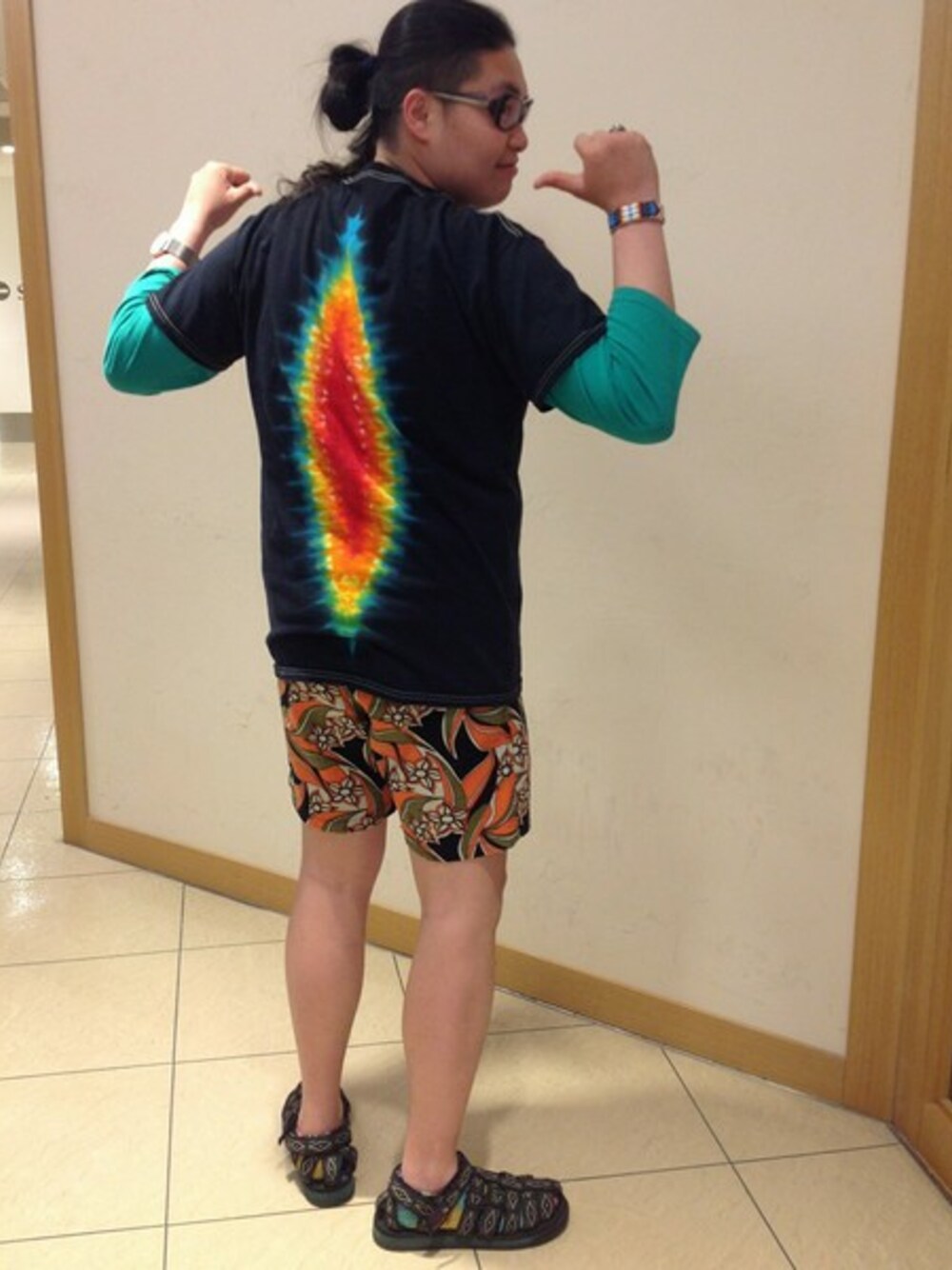 今年も膝上丈のショートパンツがきていますね!柄にインパクトがあるので、お気に入りのTシャツで合わせてみてはいかがですか?