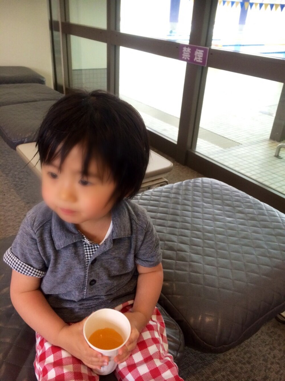 近所の温泉プールで遊んで疲れたご様子^^; 運動の後の一杯は格別だねぇー(笑)